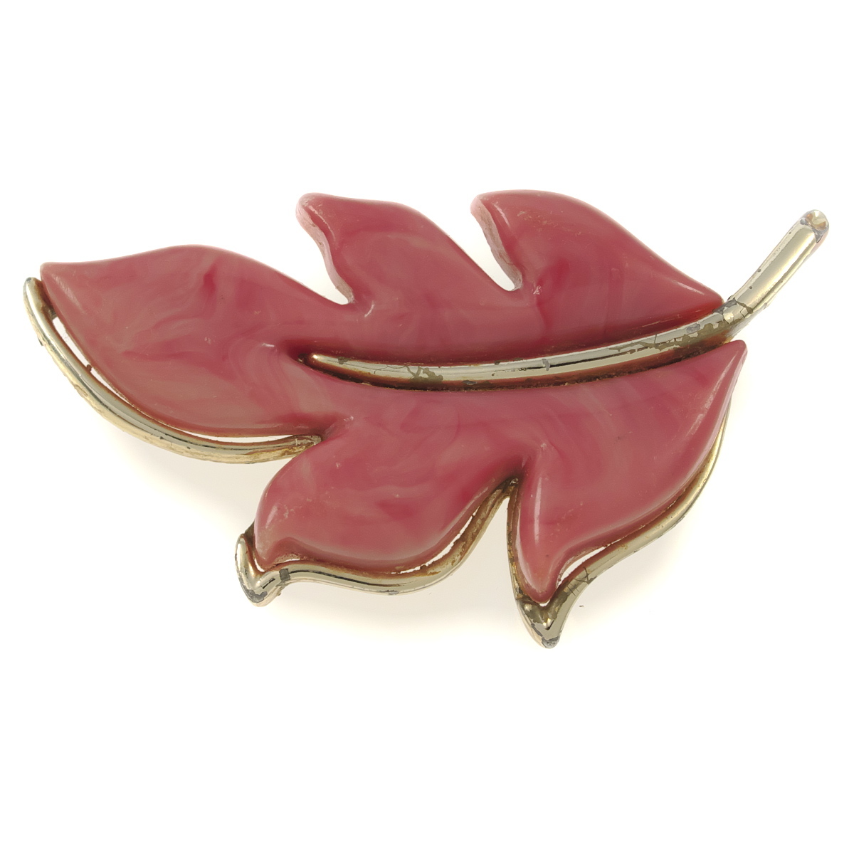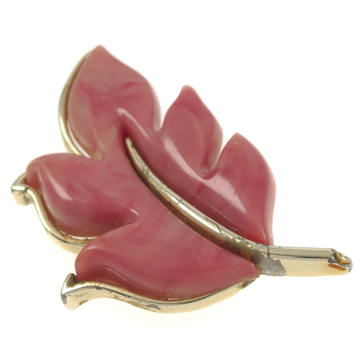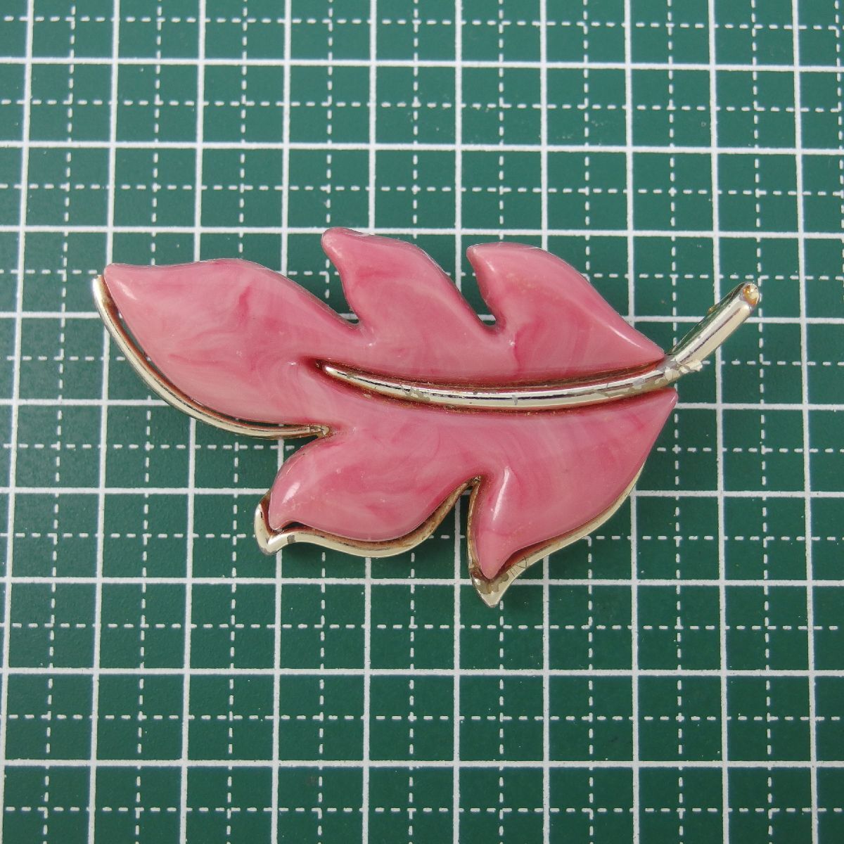 A10713◆【SARAH COVENTRY】◆ ピンク系マーブルストーン リーフモチーフ 葉っぱ ◆ ヴィンテージブローチ ◆