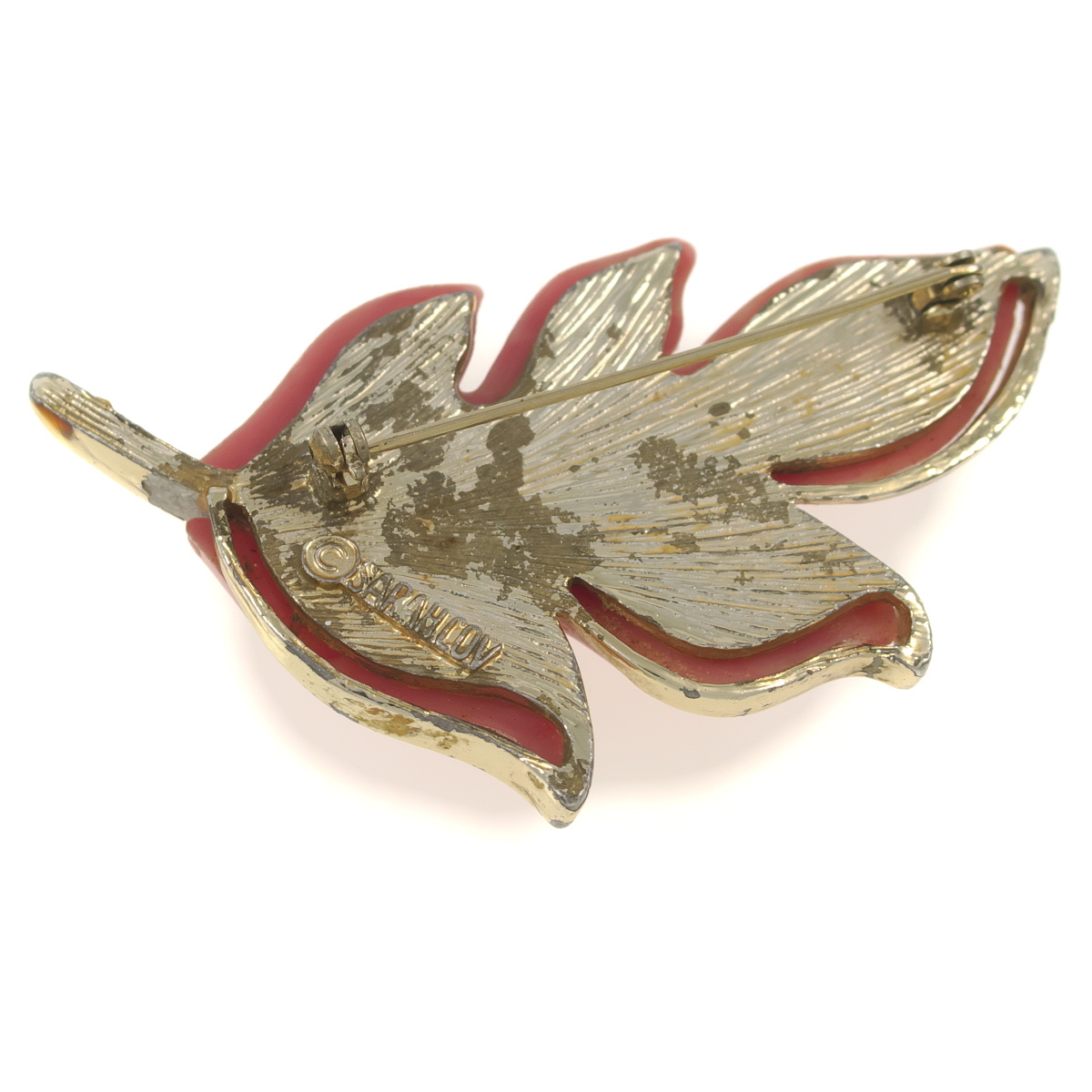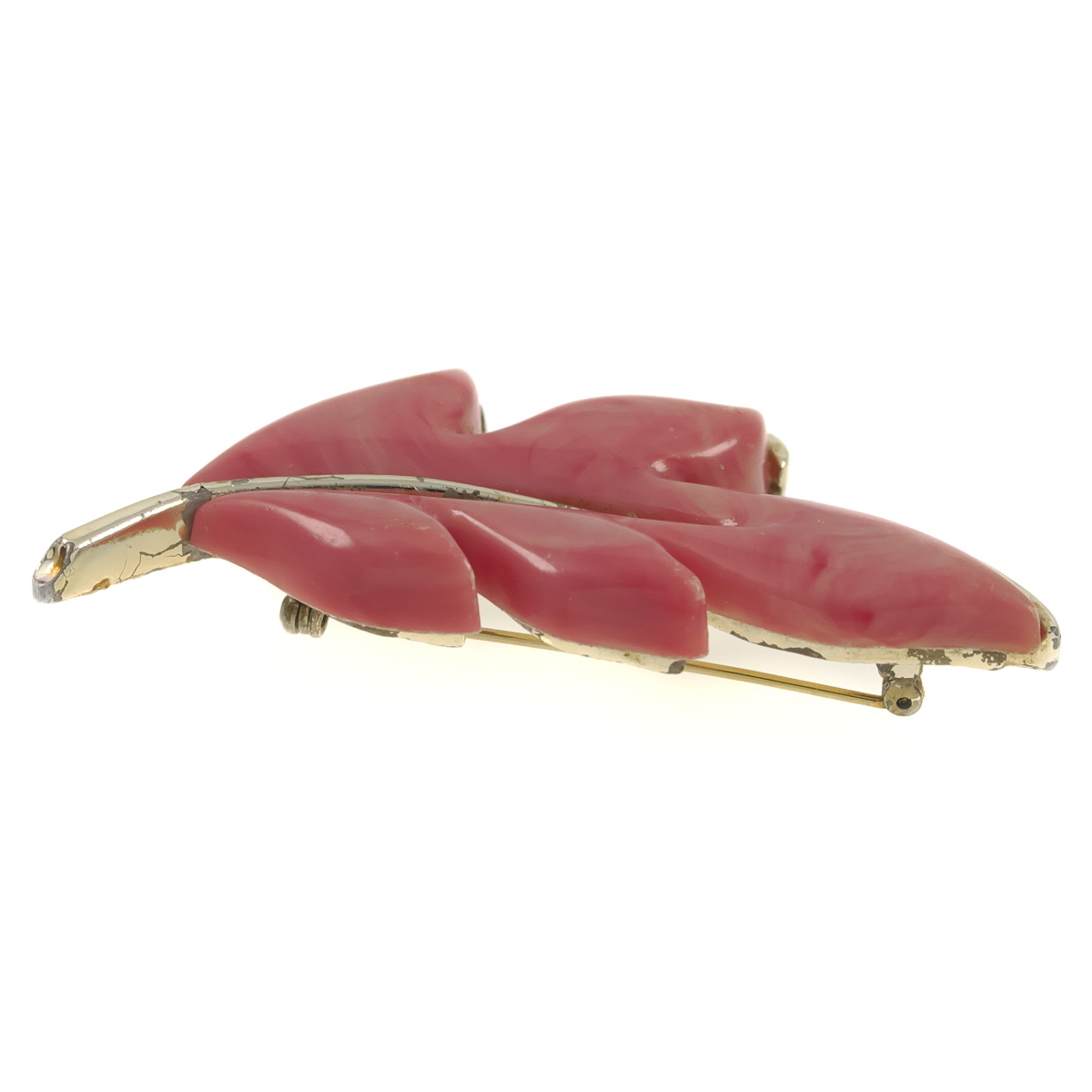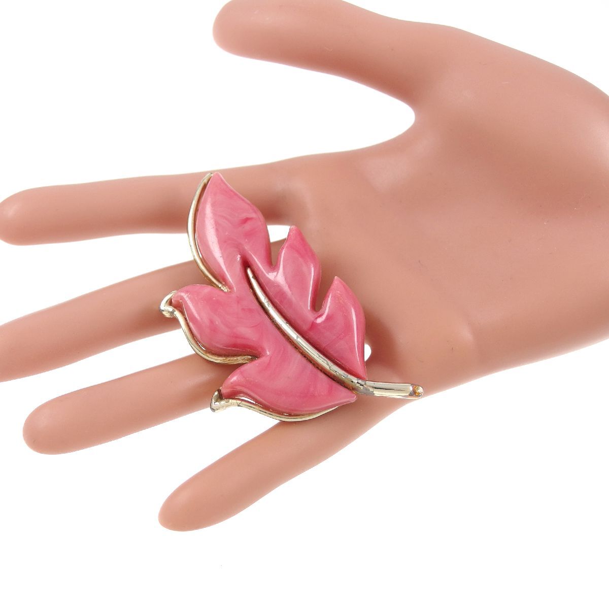 A10713◆【SARAH COVENTRY】◆ ピンク系マーブルストーン リーフモチーフ 葉っぱ ◆ ヴィンテージブローチ ◆