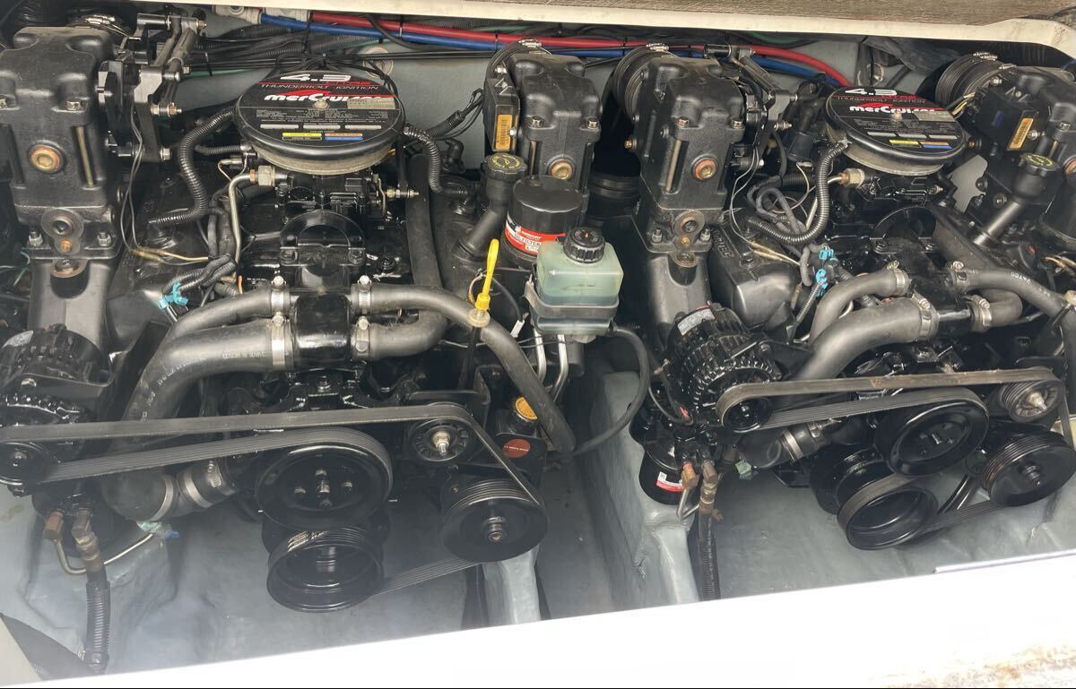 程度の良いドライブに2本交換、ジンバルハウジング交換×2、インペラ交換×2、ギアオイル交換×2、トリムシリンダーオーバーホール×4、ウレタン塗装、デカール張り替え