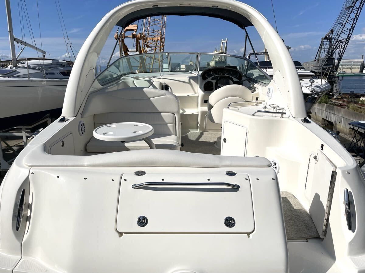 船体 ハルをライトグレーに塗装、全面バフ磨き、船底塗装、ホーン交換、窓枠塗装、ステンレス磨き、デッキシャワーヘッド交換、ワイパー交換、スピーカー交換×4、デッキシート全面レザー張り替え、シートベース全面新規作成、アフトベッドルームシート張り替え、カバースタッドボルト交換