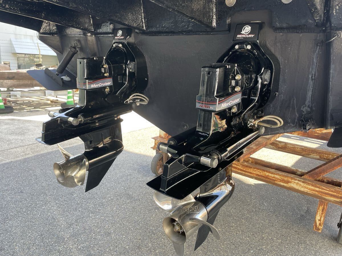装備 ウィンドラス、デッキシャワー、トランサムステップ、ラダー、油圧フラップ、オーニング、発電機、エアコン、温水器、冷蔵庫、IHクッキングヒーター、バッテリーチャージャー、マリントイレ、オーディオ、TV、陸電コンセント、ロッドホルダー、デッキカーペット(新品)