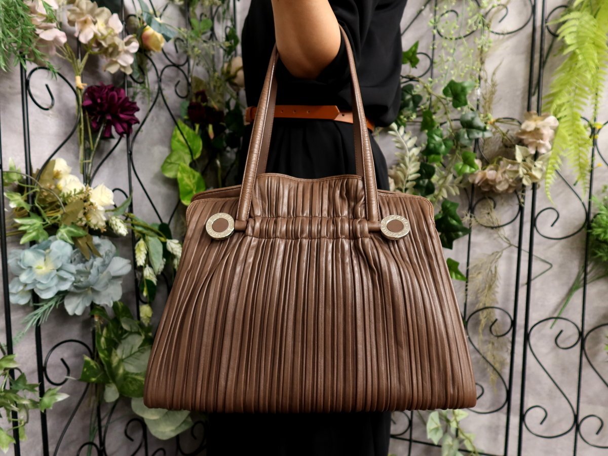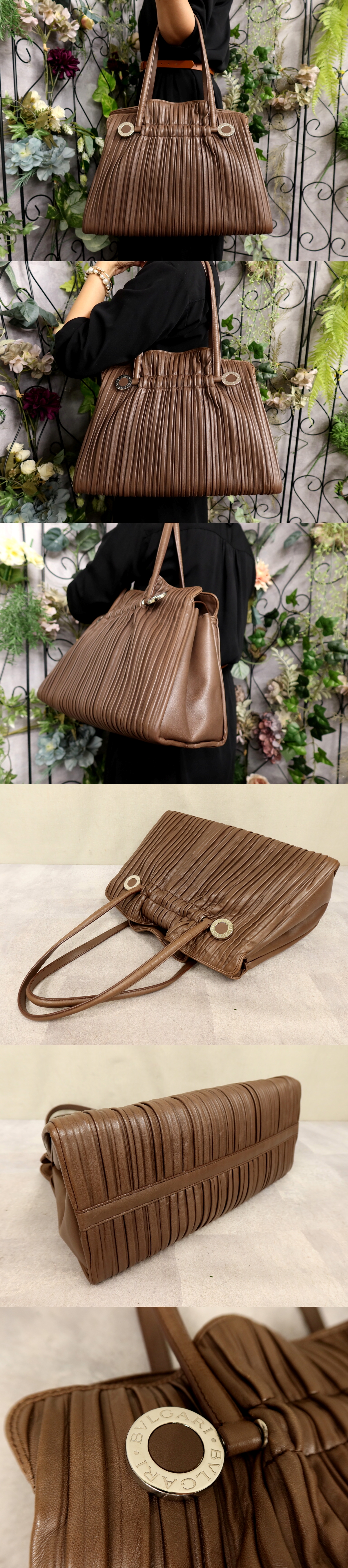 ●超美品●BVLGARI ブルガリ●ブルガリブルガリ●カーフ レザー 本革●トート バッグ●ブラウン●シルバー金具●肩掛け●B5 収納●Js60535