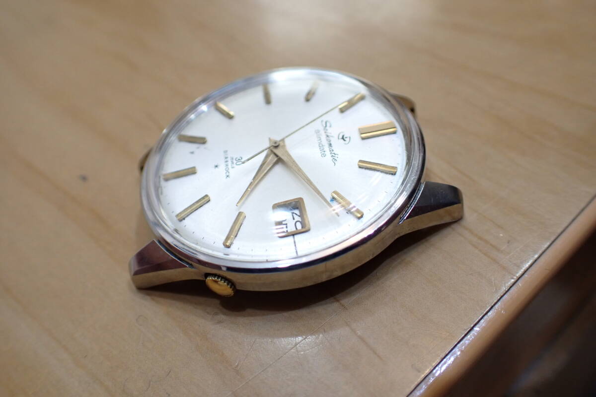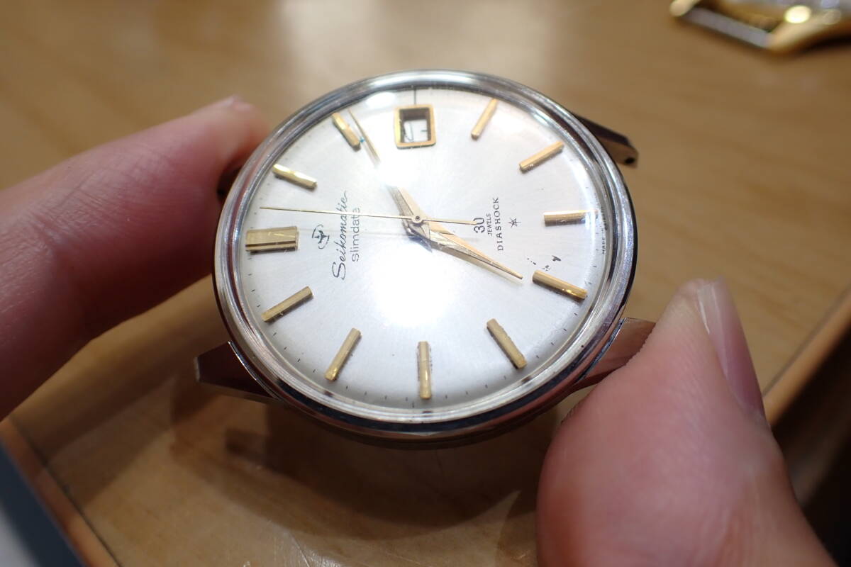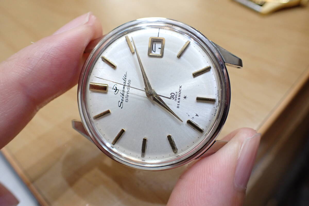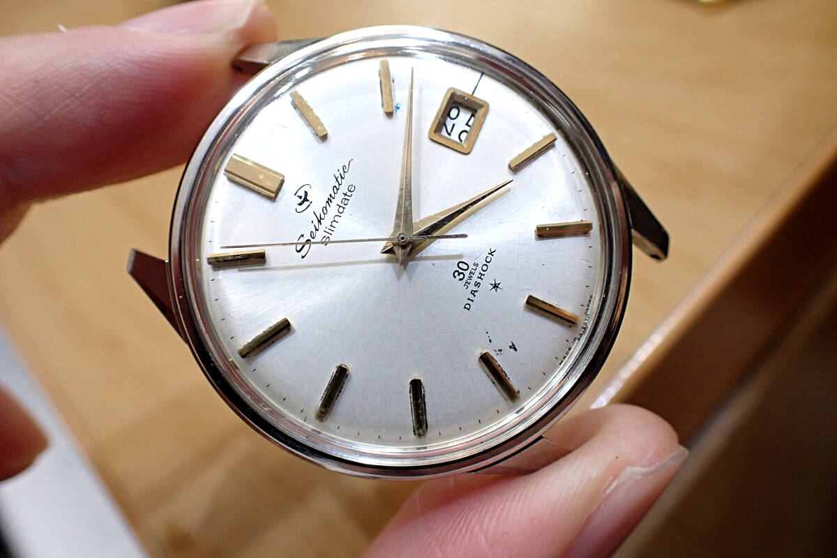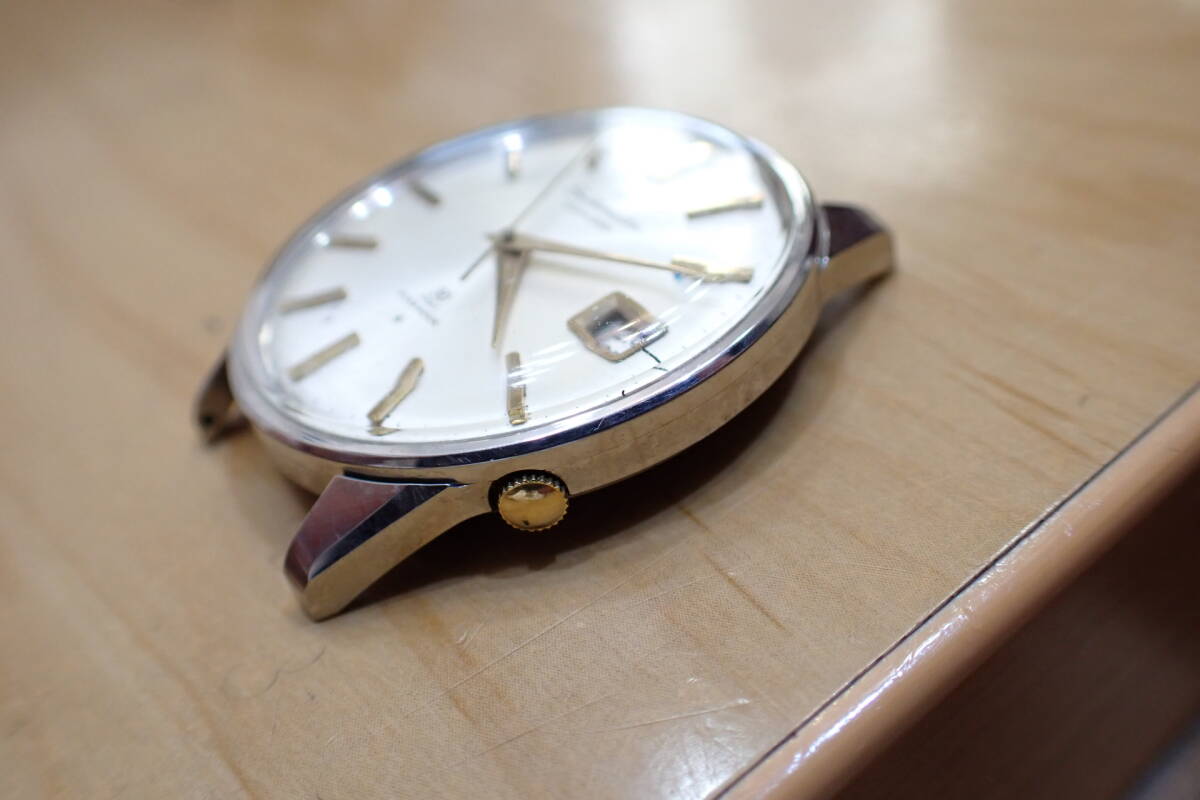 デッドストック/未使用 SEIKO/セイコー/ セイコーマチック スリムデータ アンティーク 自動巻きメンズ腕時計です。 セイコーの貴重なセイコーマチック、メンズ腕時計です。 時計店の在庫で、ベルトはありませんが、一部に保護シール跡のある長期保管の未使用品です。 薄い保管キズと、文字盤に一部経年劣化ありますが、全体的には綺麗です。 時計を振って、数分程度の確認ですがカチカチと動いています。 日付はずれている?ようです。 オーバーホール前提でジャンクでお願いします。 ケースサイズ:約36mm !オークション終了後、24時間以内に「お取引を始める」ボタンをクリックして、必ず取引をスタートして下さい。 取引のスタートが無ければ、削除させていただきます。 必ず厳守してください! 「新規ID」「直近で悪い評価が多い方」のトラブル(イタズラなど)が非常に多いです。 当方が、お取引に支障があると判断したID(特に新規ID)は削除します。 ●ジャンク品と記載の物の商品到着時の動作保証はありません。 ●付属品等は、写真に写っているものですべてです。 | ||||