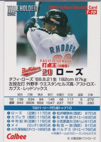 ●2003カルビー 【T.ローズ】 タイトルホルダー T-10:近鉄 R3