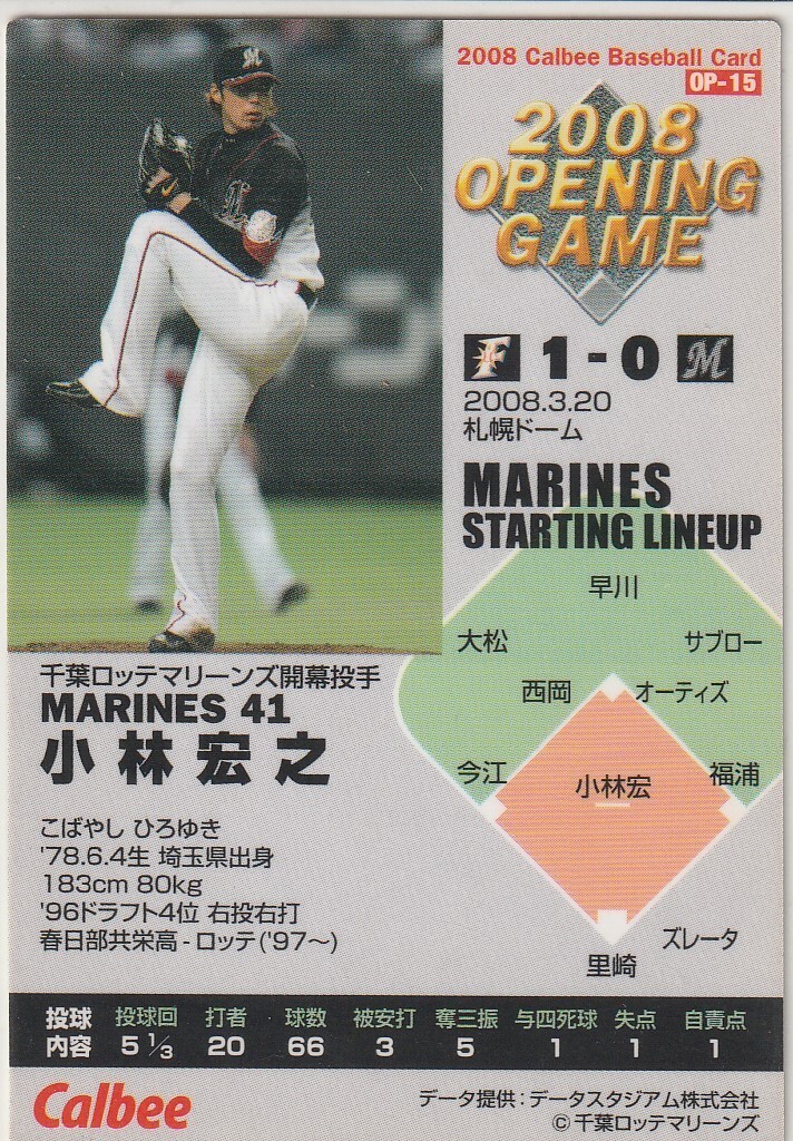 ●2009カルビー 【小林 宏之】 開幕戦カード No.OP-15:ロッテ