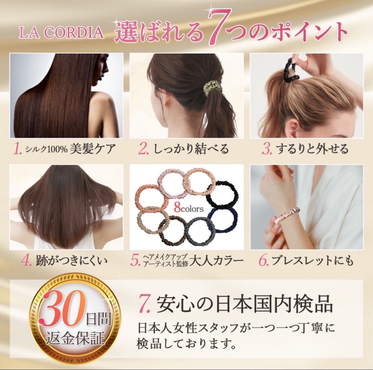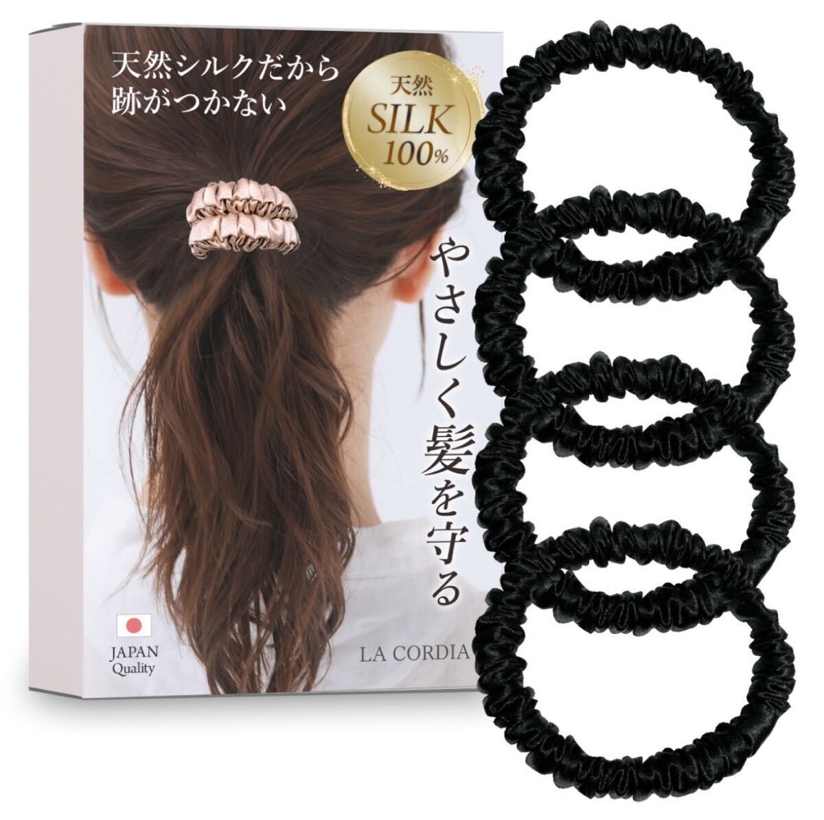 天然シルク100%の髪に優しいヘアゴム4個セット。