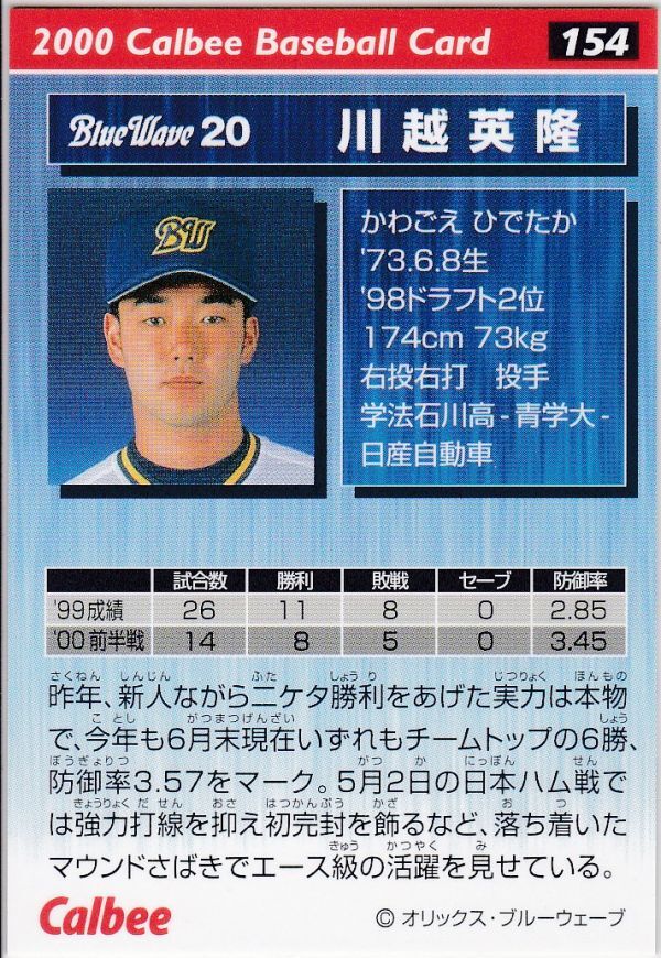 ●2000カルビー 【川越 英隆】 プレ版:金箔押サインパラレル No.154:オリックス R2