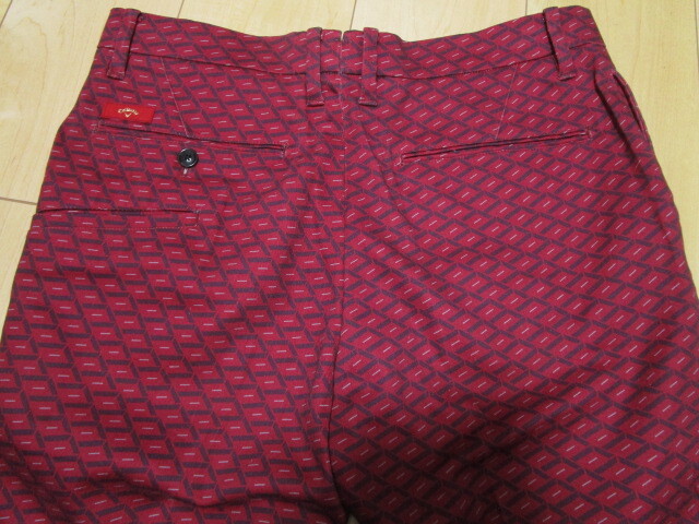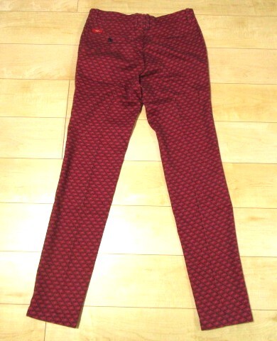 | ★商品説明★ | お色はボルドー系☆御覧のような総柄のおしゃれなアイテム☆キャロウェイのパッチなどディテールも◎バックポケ左の下に追加ポケットあり◎センタープレス☆ストレッチが効いていますので履き心地抜群◎サイズはL、平置き、W(前後をあわせて平行に直線にした状態で計測)約42×2㎝,股下約84cm、股上25cmです。(素人寸)。 着用少なめの良品だと思います。 | ||||