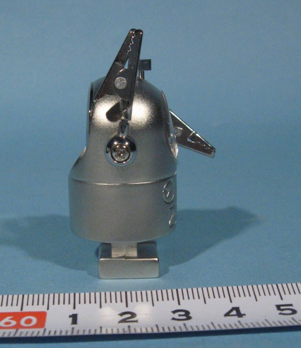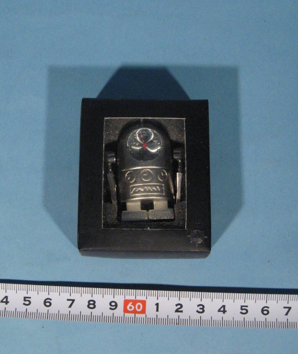 ピューター製 小型ロボット型 デスククロック(高さ5.2cm、幅3.6cm、奥行き2.6cm)で、1999(H11)年に購入後、ガラス保護シールも剥がさず仕舞っていた未使用の新同品です。