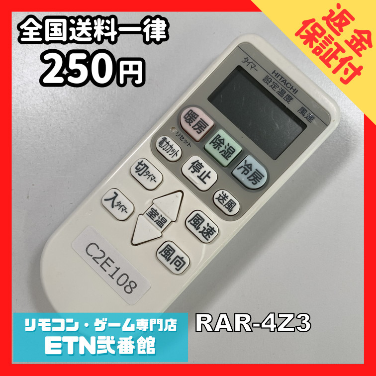 C2E108 【送料250円】エアコン リモコン / 日立 ヒタチ HITACHI RAR-4Z3 冷房 暖房 動作確認済み★即発送★