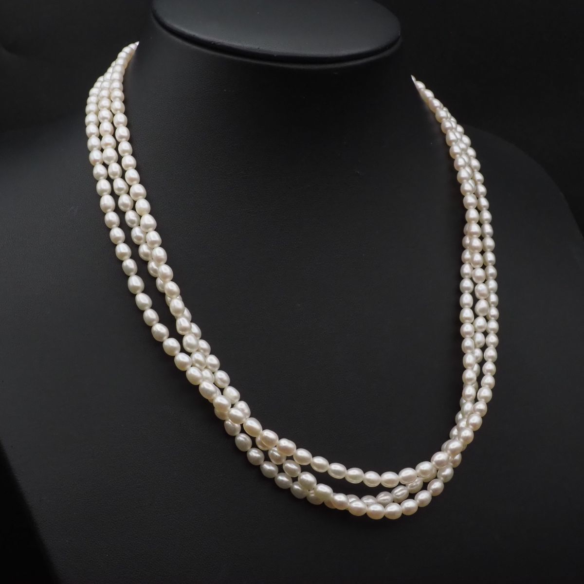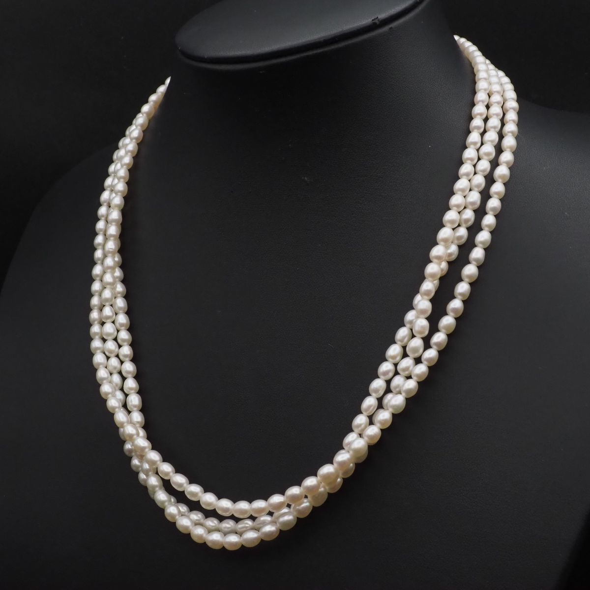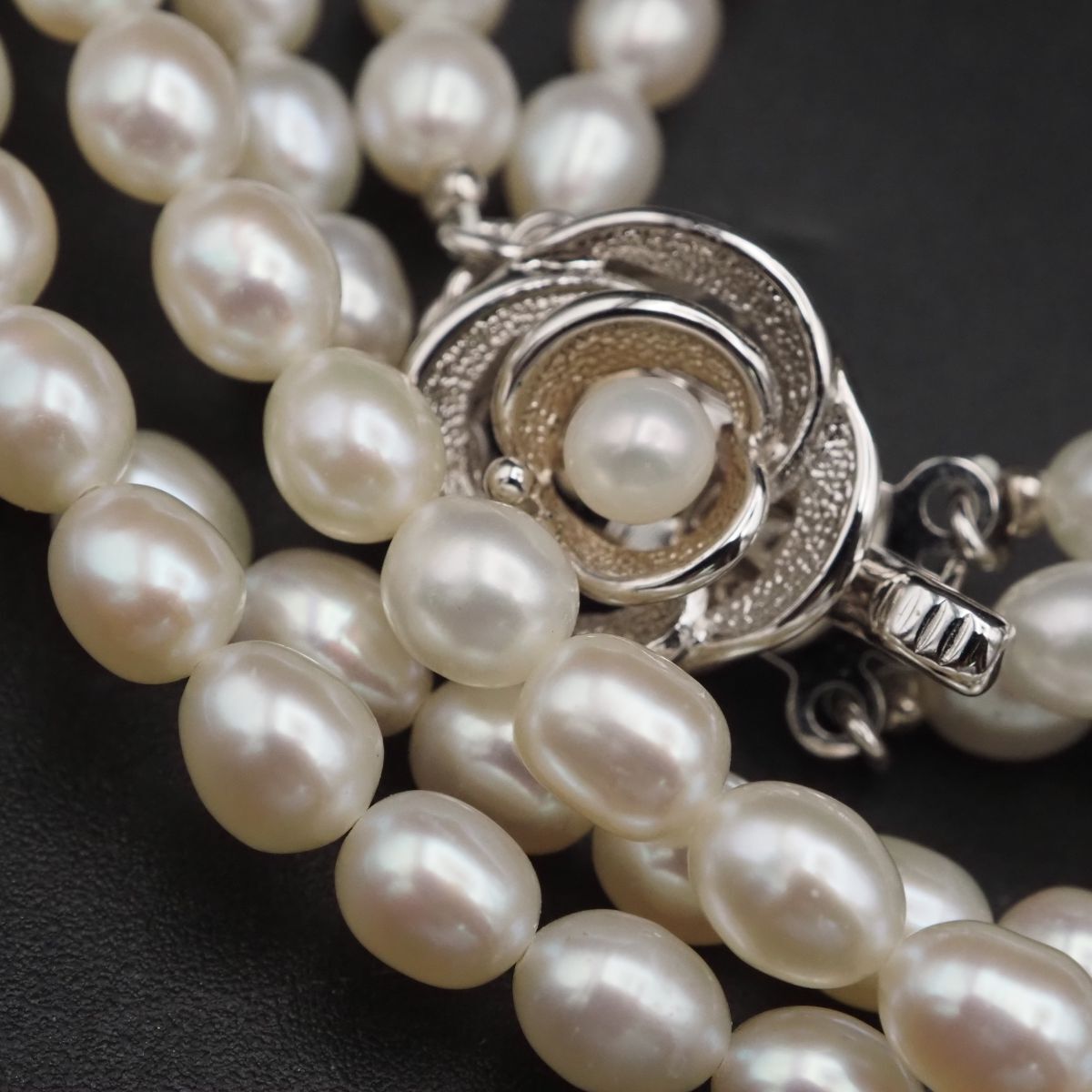 F426 淡水真珠 パール SILVER刻印 ネックレス 3連 デザイン シルバー 6月誕生石