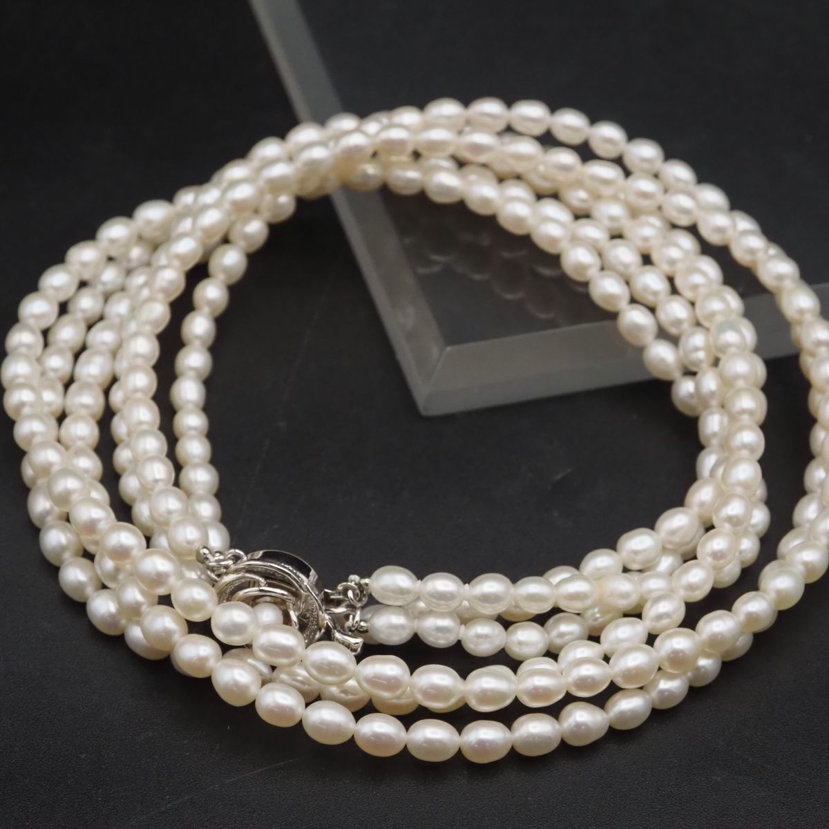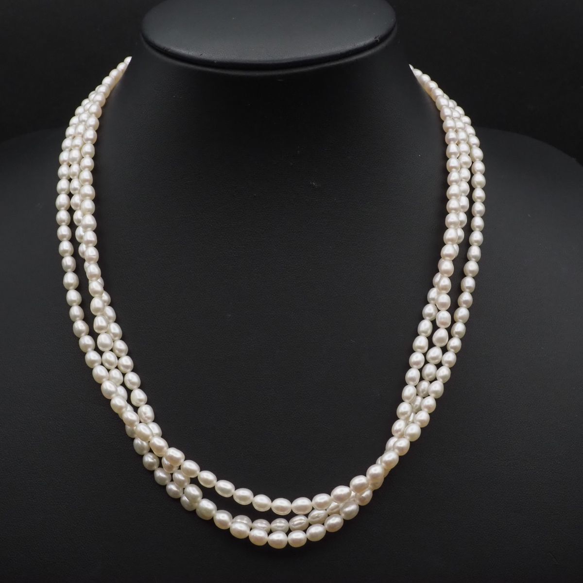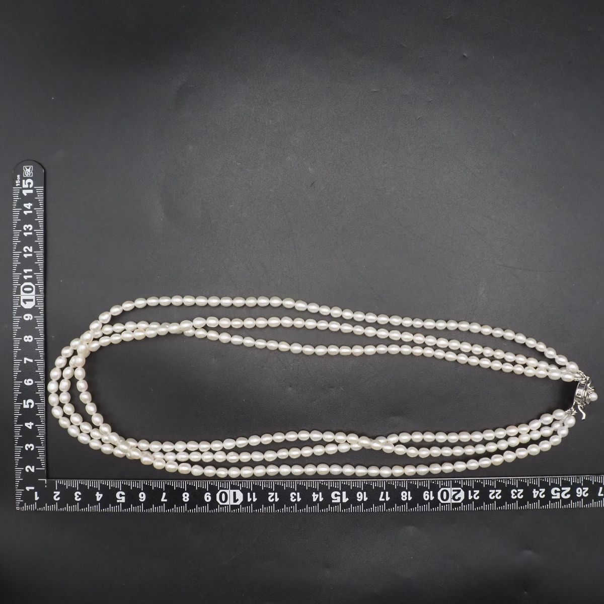 F426 淡水真珠 パール SILVER刻印 ネックレス 3連 デザイン シルバー 6月誕生石