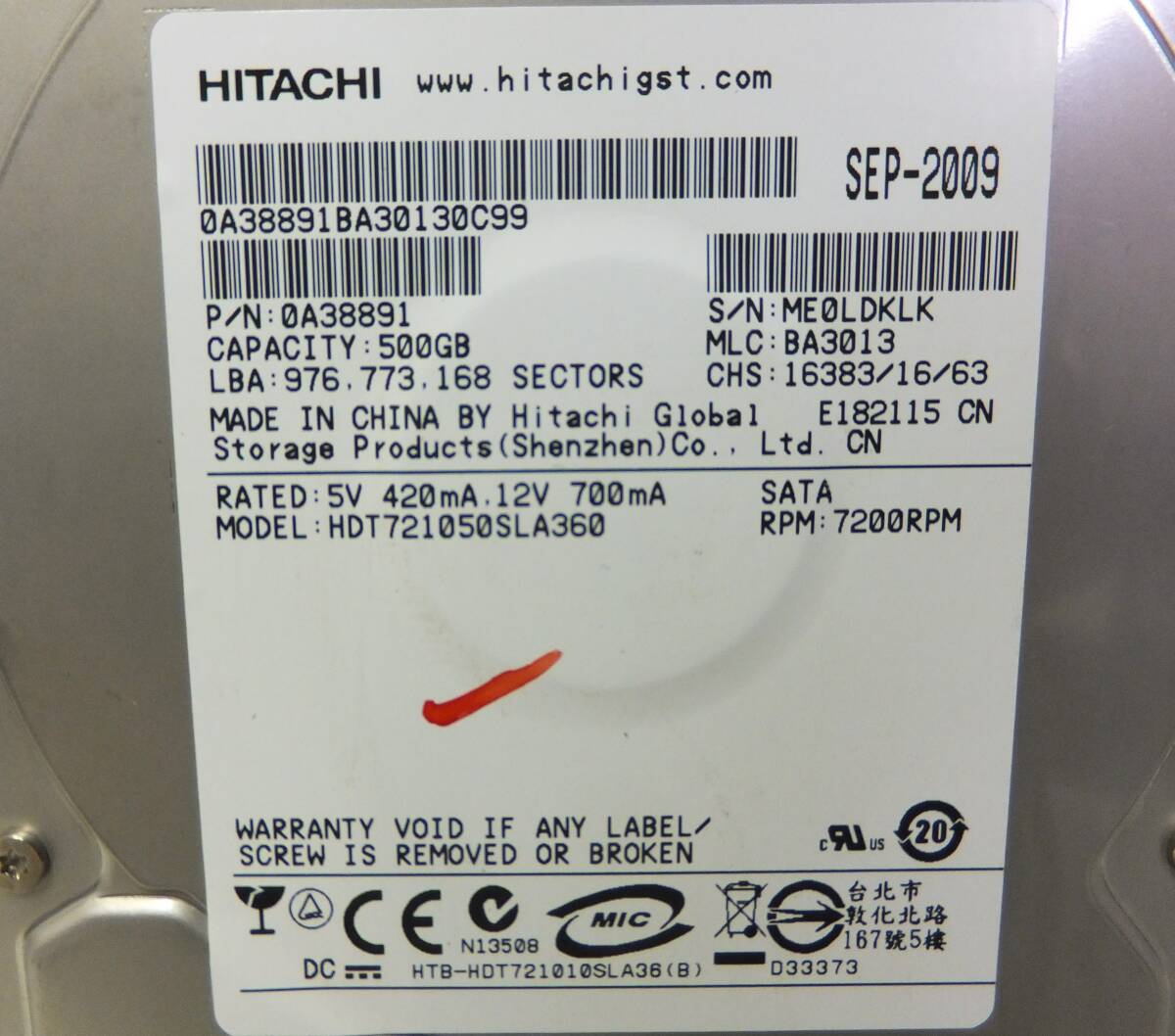 ハードディスク HITACHI HDT721050SLA360 500GB(レコーダー BD-HDW45から外し)中古 11 | |