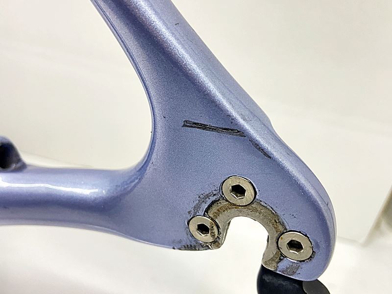 フォーク、シートステーにタイヤの擦れによるキズ、塗装ハゲがあります。