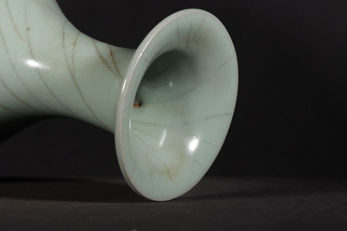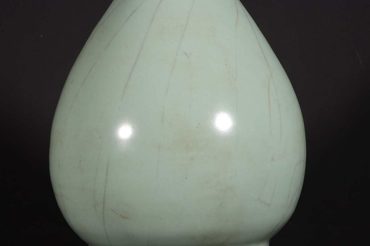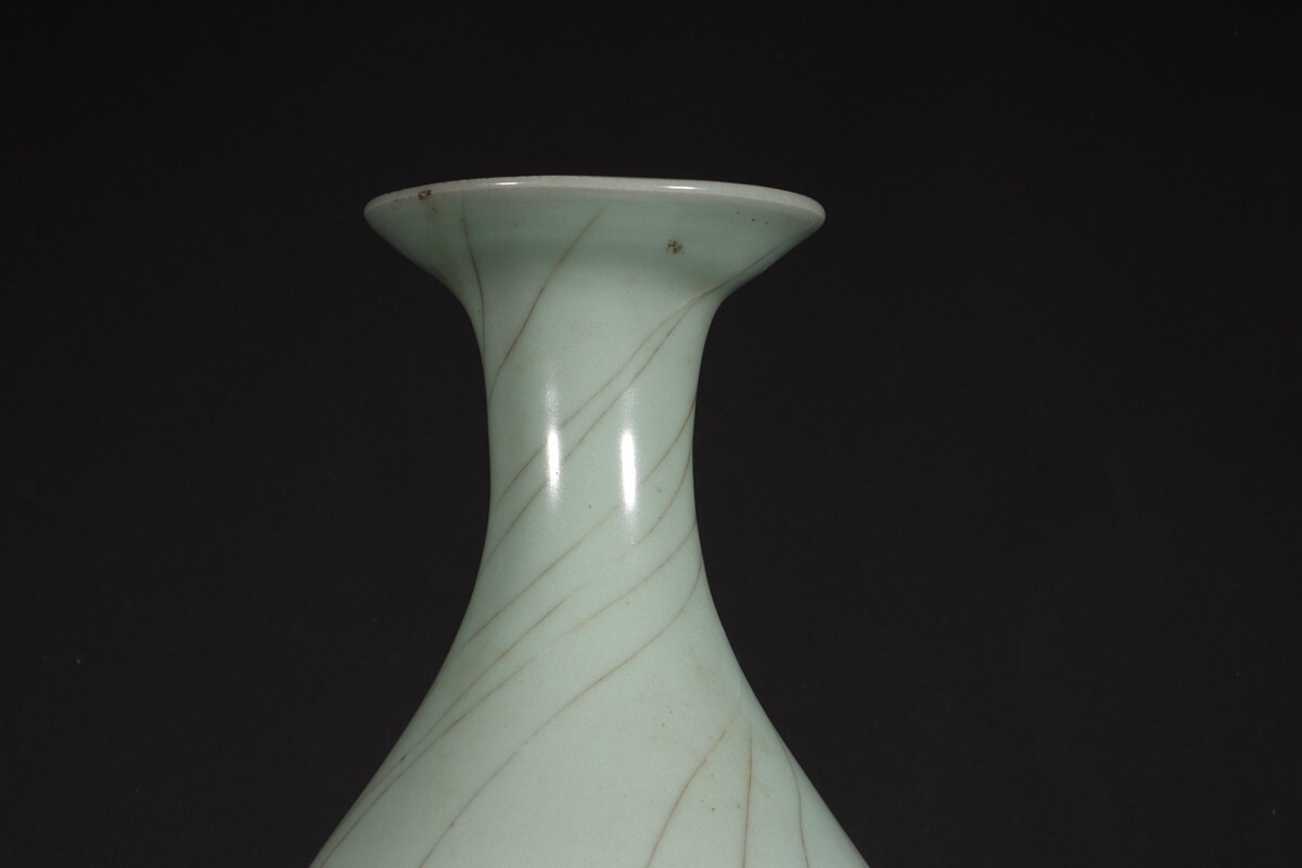 「宋 官窯 陶磁器 粉青釉 玉壺春瓶」染付 置物 擺件 古賞物 中国古美術 旧蔵出