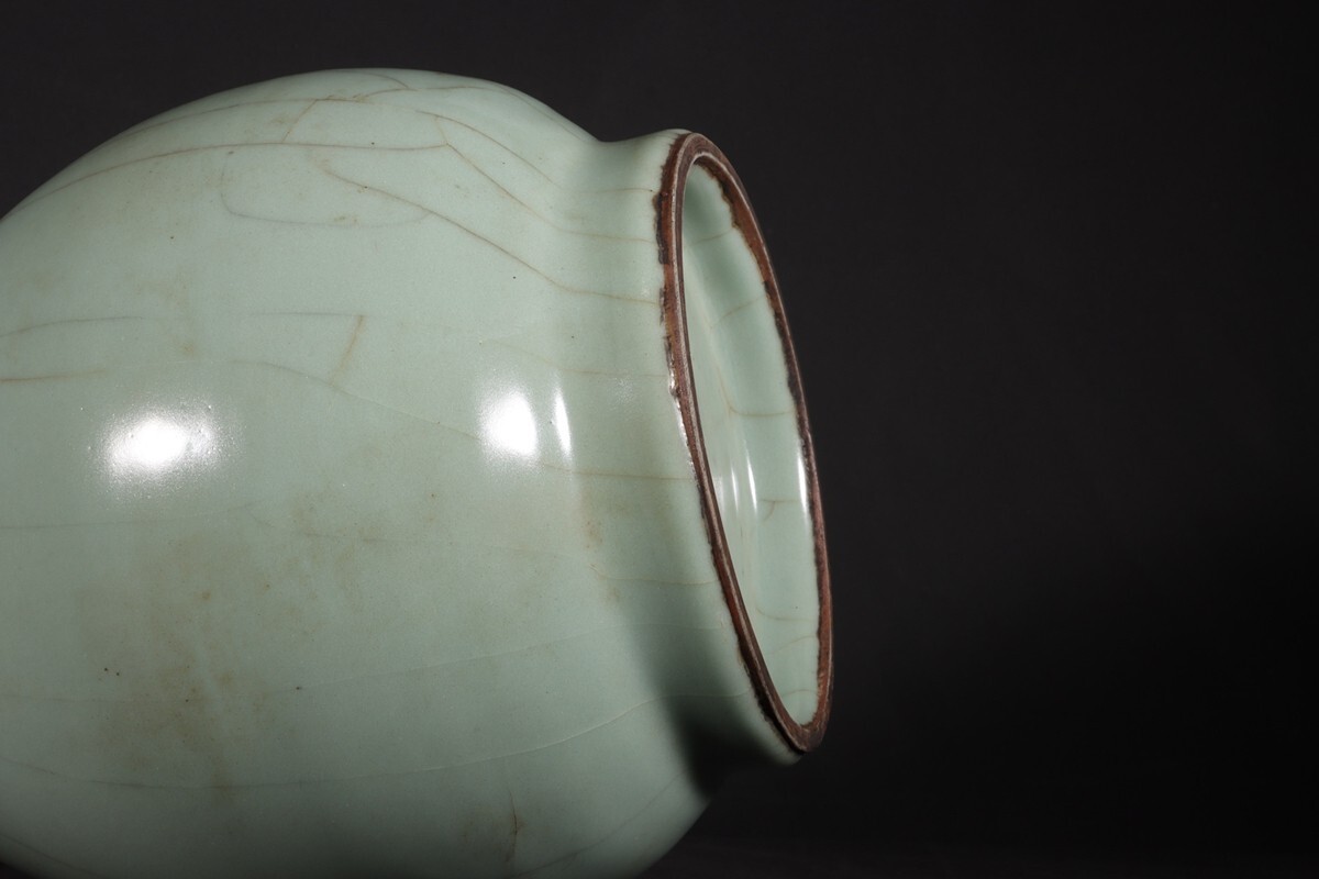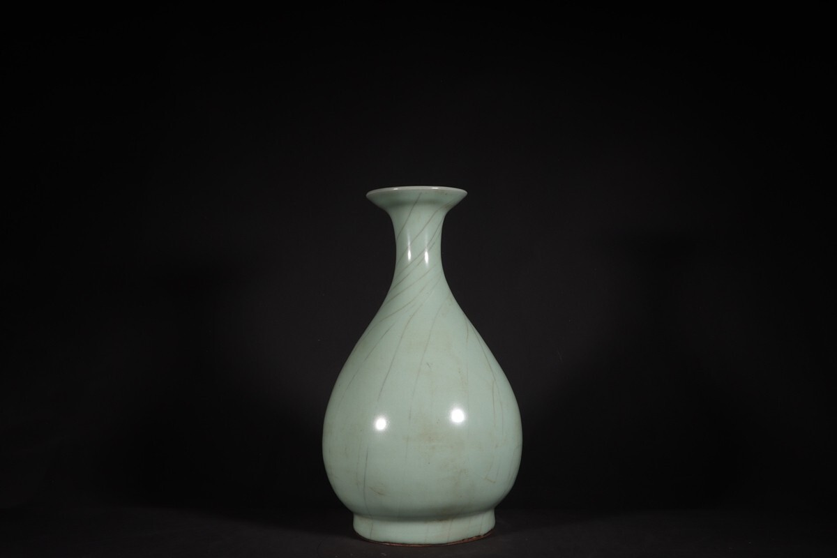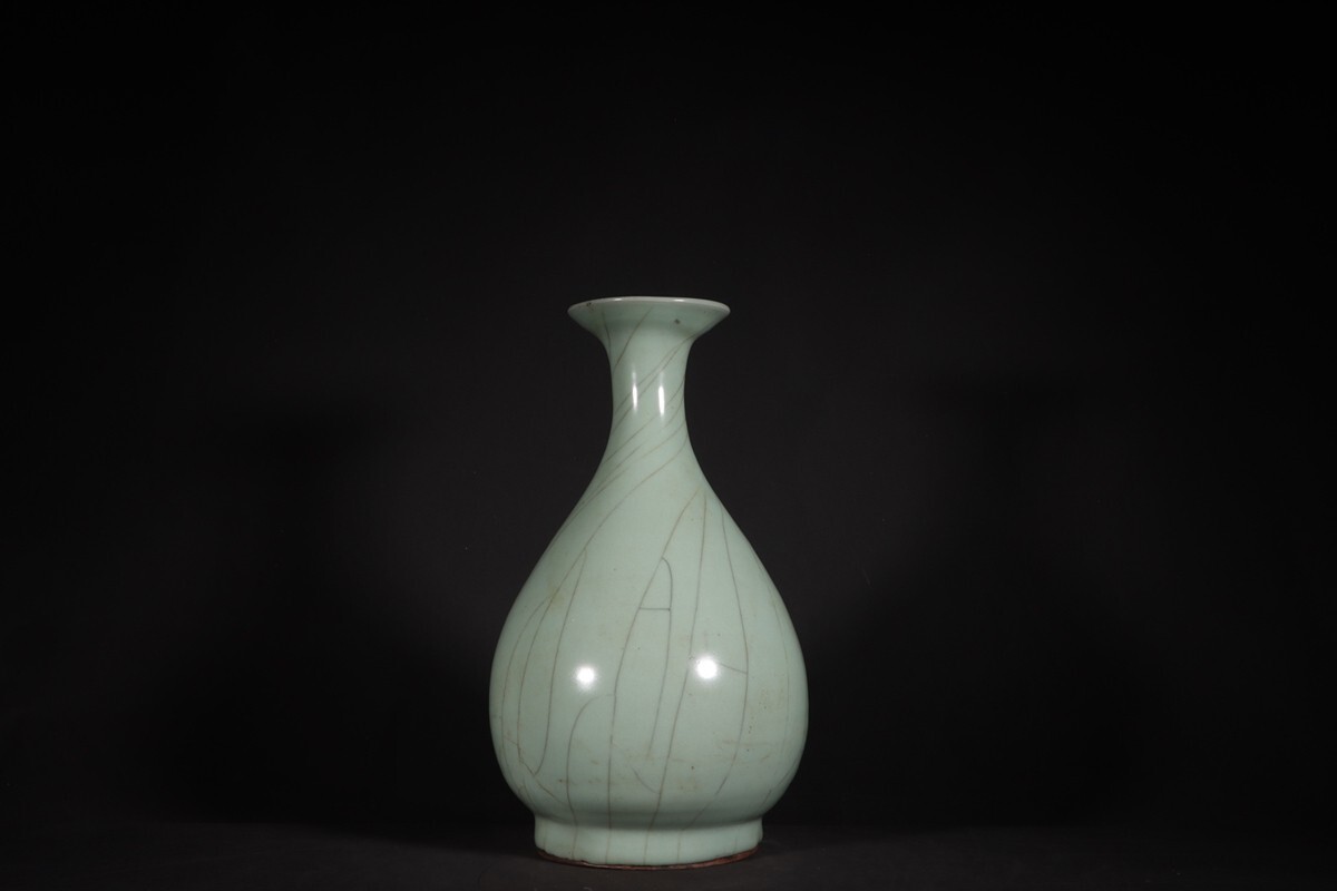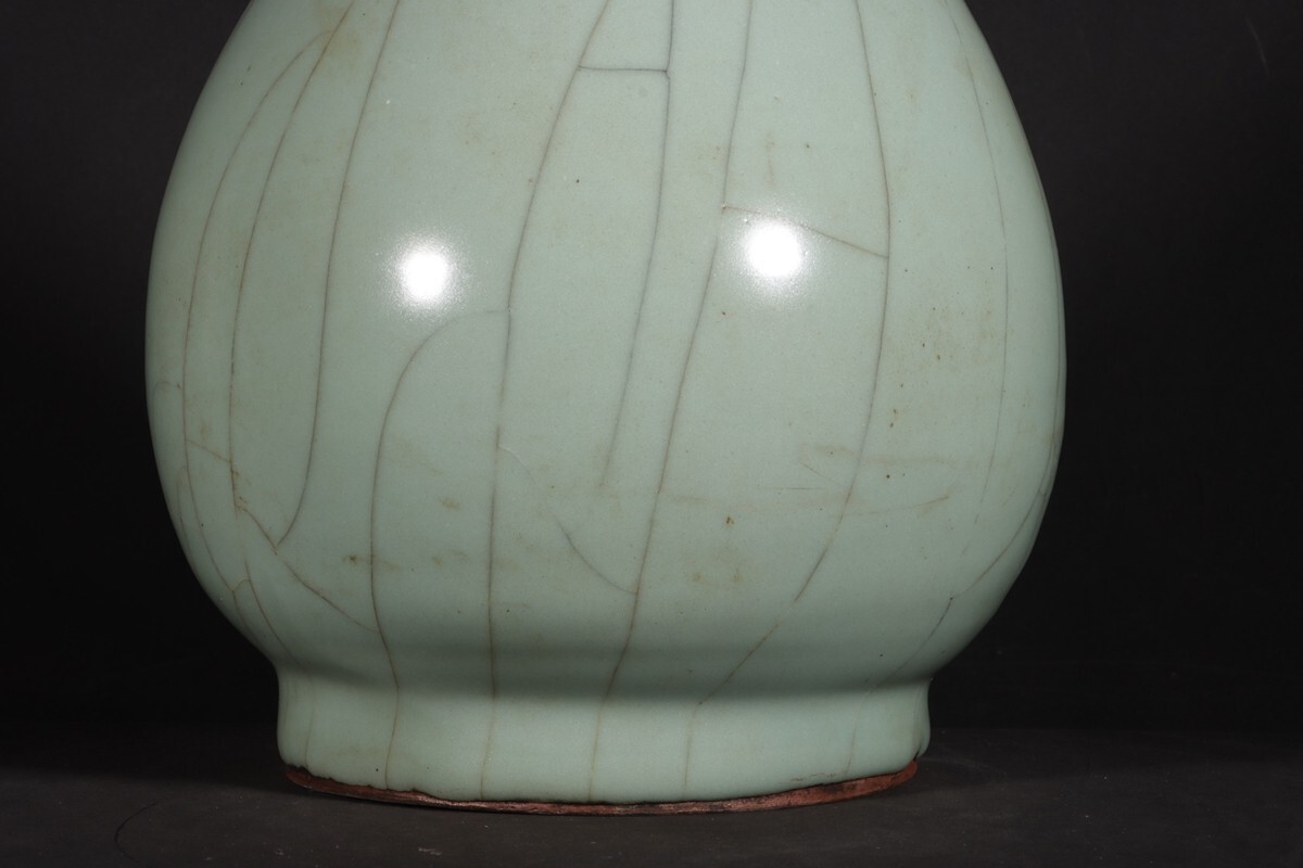 「宋 官窯 陶磁器 粉青釉 玉壺春瓶」染付 置物 擺件 古賞物 中国古美術 旧蔵出