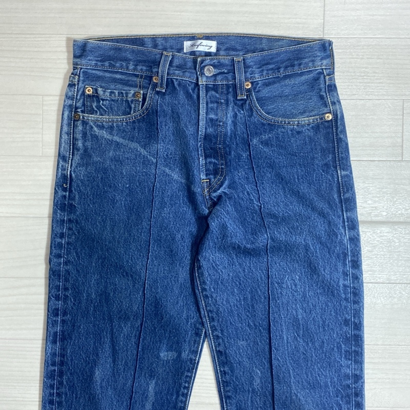 knifewing/ナイフウィング/センターシーム/再構築/リメイクデニムパンツ/ボタンフライ/ストレートシルエット/インディゴブルー