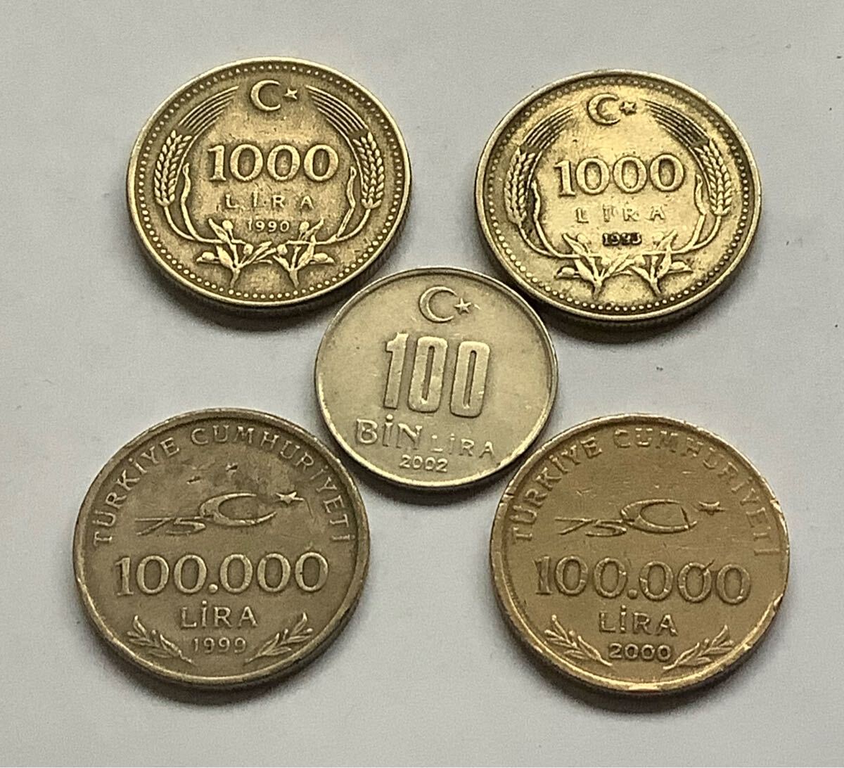 【商品詳細】トルコ 100000リラ硬貨1999年 2000年 1000リラ硬貨1990年 1991年 100binリラ硬貨2002年 額面・年号違い 各1枚ずつ5枚まとめて