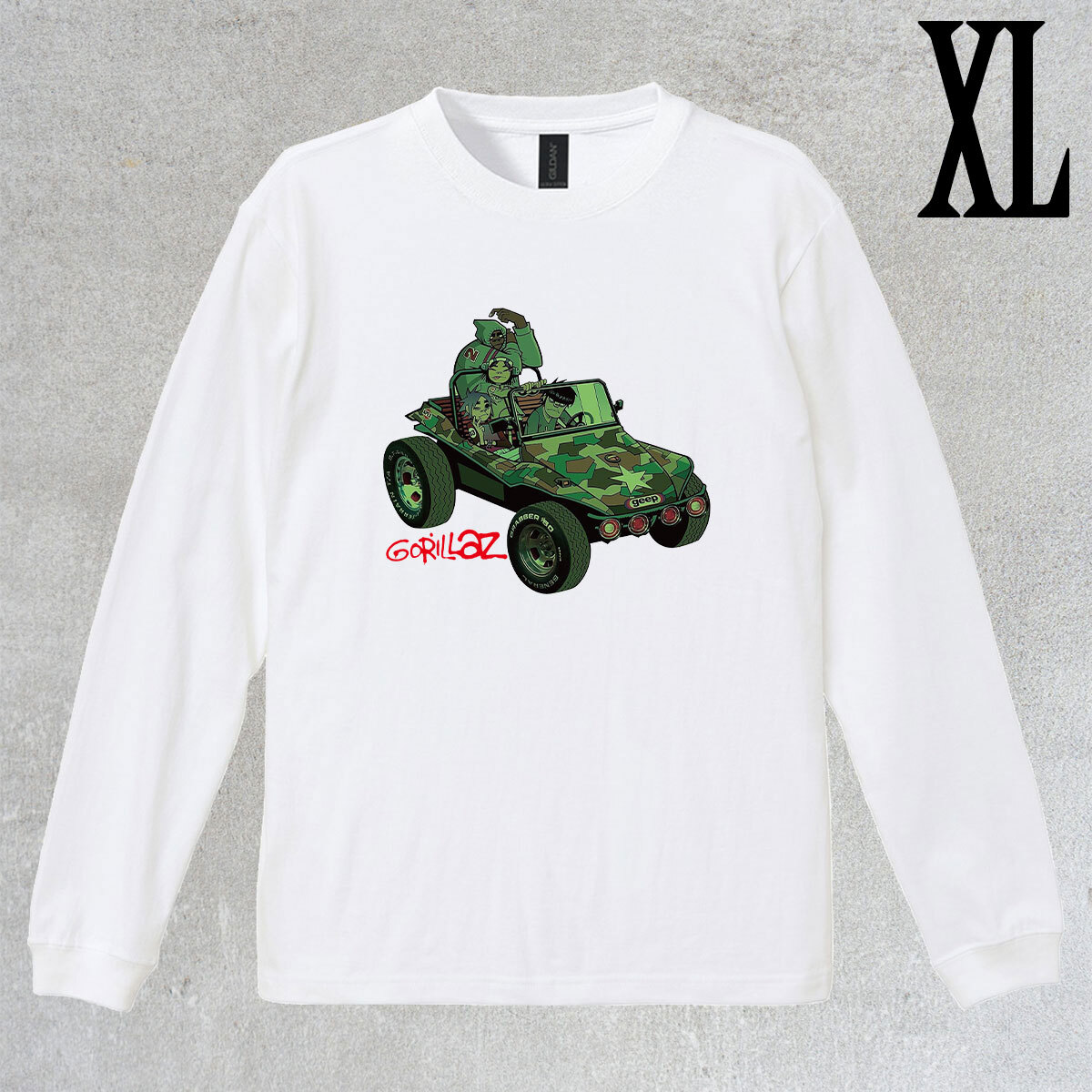 ゴリラズ Gorillaz イラスト プリント リブ付き 長袖 Tシャツ ロンT ミュージックTシャツ 6.0oz コットン100% ユニセックス XL