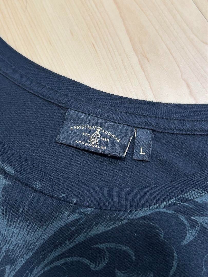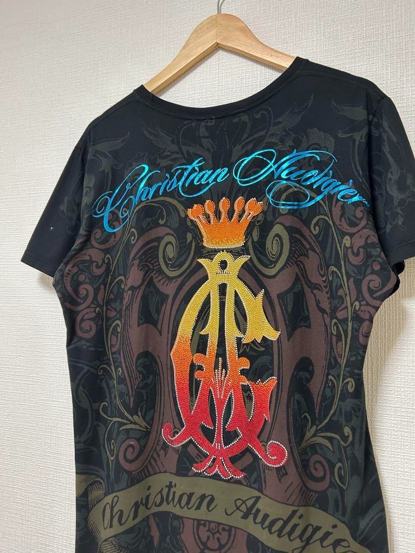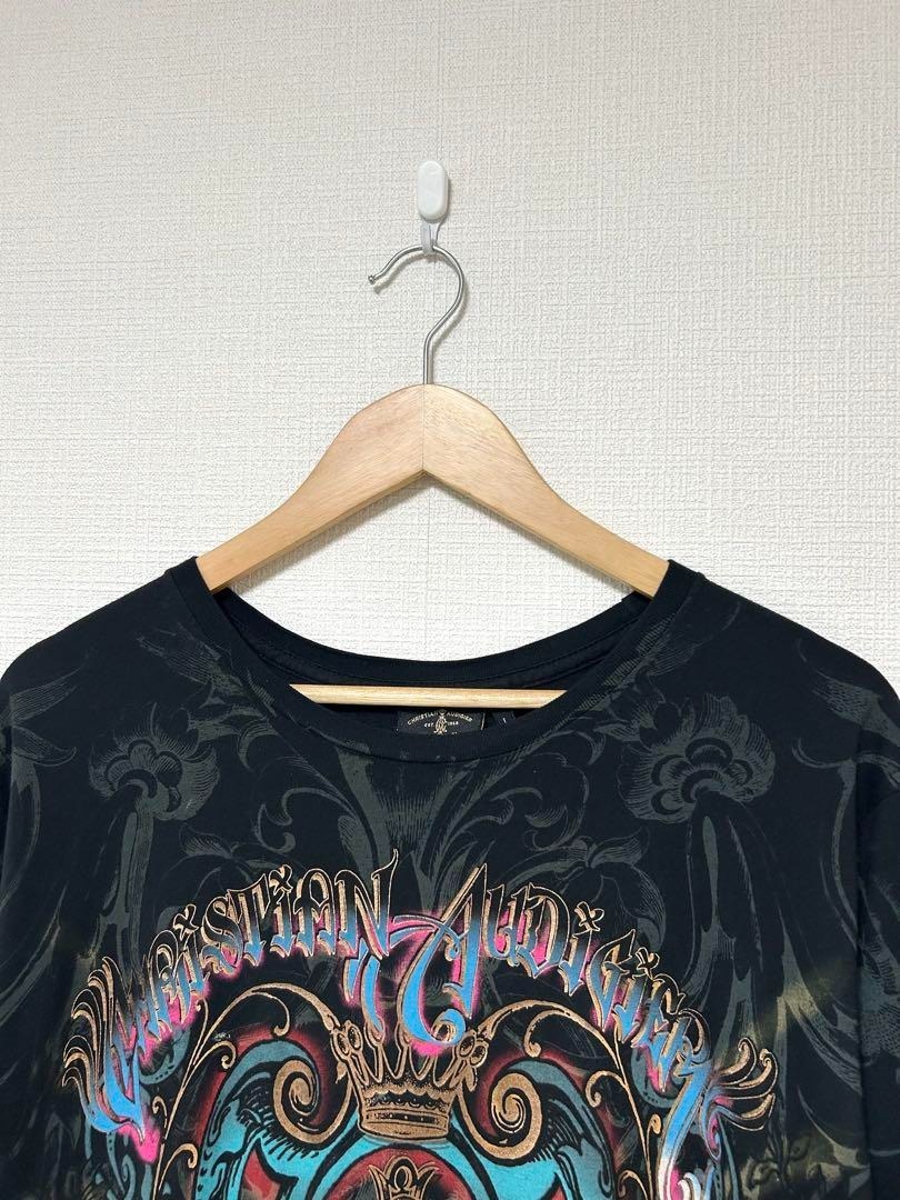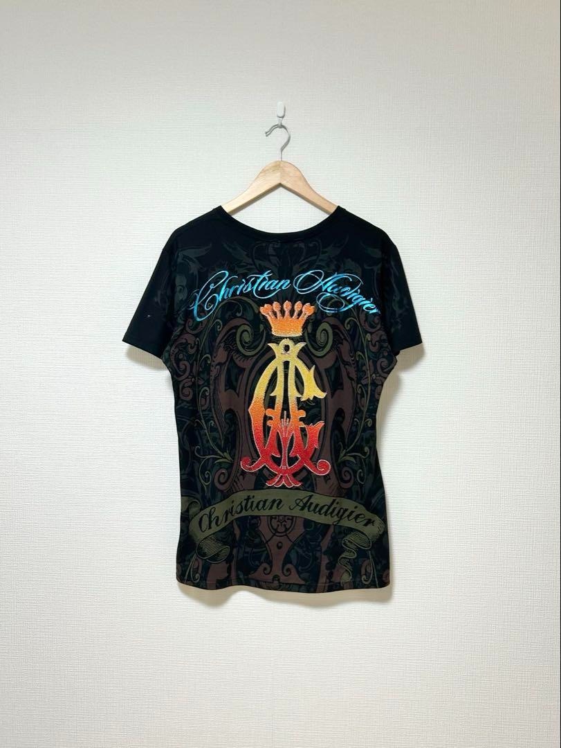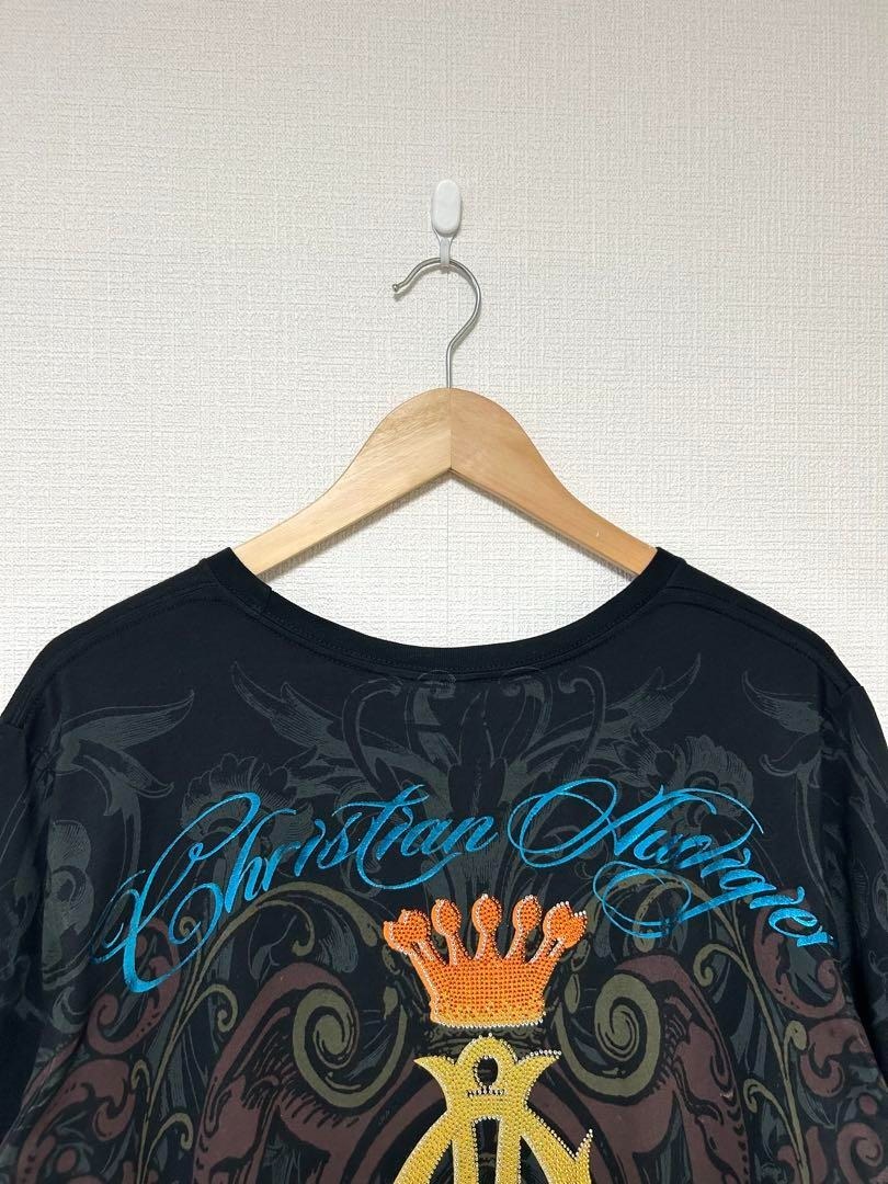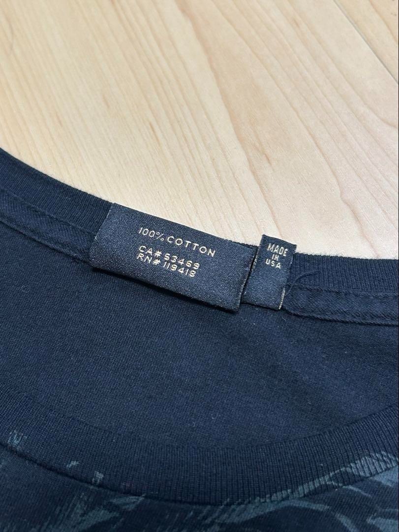 袖まで贅沢なプリント、背面にはラインストーンがあしらわれています。生地は薄めの肌触り良いコットンです。