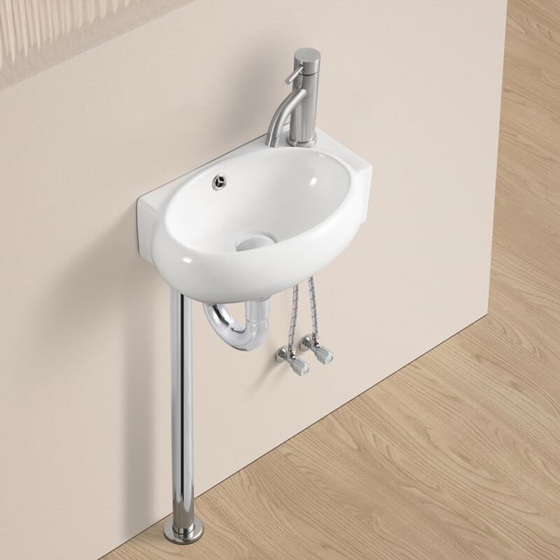 【Sトラップ排水セット付き】 手洗い器 オシャレ 手洗いボウル 壁掛け 425*285*150mm 手洗器 コンパクト 小型洗面ボウル ミニ型 洗面台 壁付け型 陶器 手洗い台 (右側)