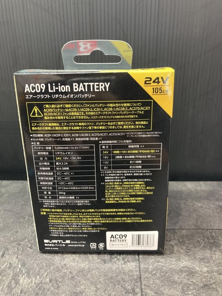 バートル ■商品名 空調ウエア用バッテリ ■型番 AC09 |