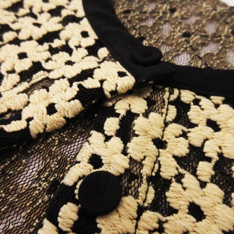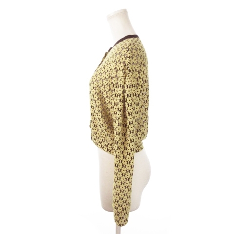 クラネ CLANE 3Dフラワーレースカーディガン クルーネック 長袖 パフスリーブ ドロップショルダー 1 S ベージュ 12122-4002
