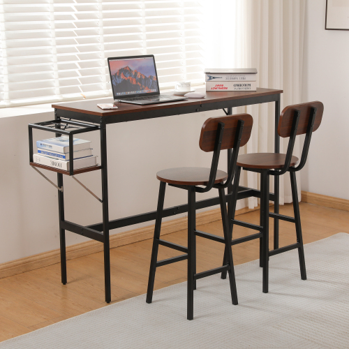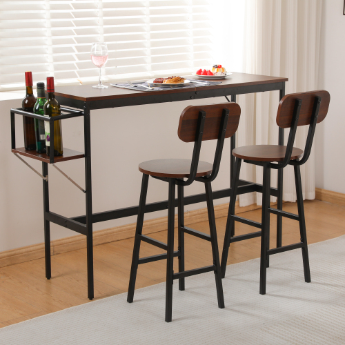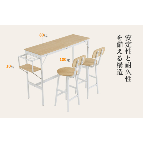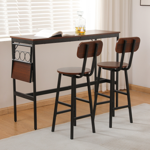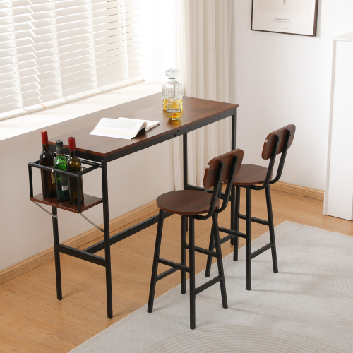 【ブラウン】新発売 カウンターテーブル スツール 3点セット ハイテーブル 木製 カウンター 木製 モダン 北欧 シンプル 省スペース