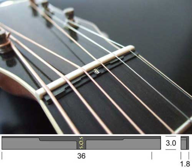 しかしながらS.O.S.(Sound Offset Spacer)はユーザーご本人にもできる簡単な取り付けで、弦と指板の間に挟むだけです。