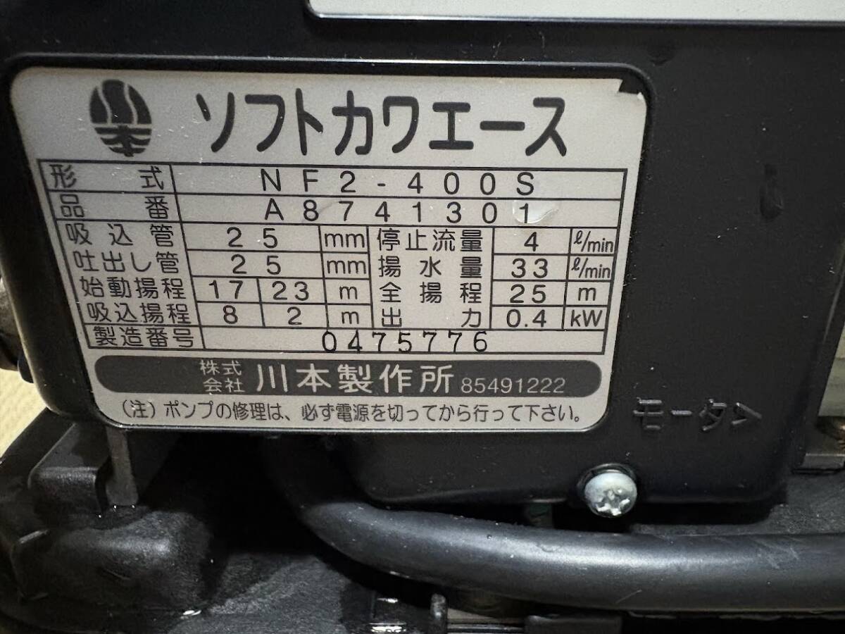 | 超美品!川本ポンプ カワエース 浅井戸 NF2-400S インバータ | ||