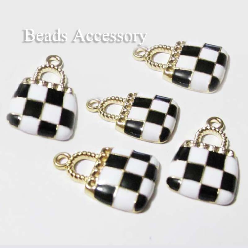 BA-0544 鞄 22×14mm ゴールドにブラックとホワイトカラー 9個