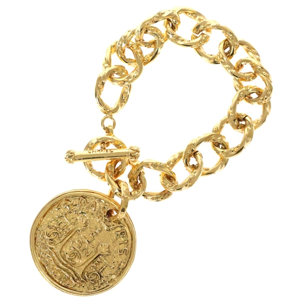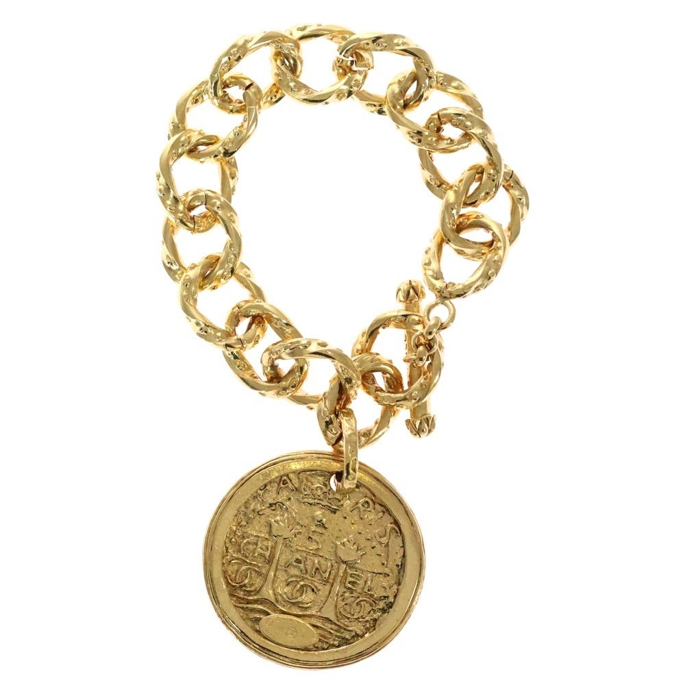CHANEL シャネル ココマーク ブレスレット メダル コイン ゴールド チェーン GP 93A
