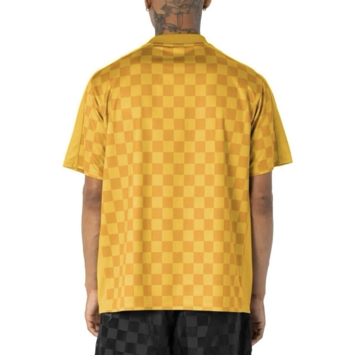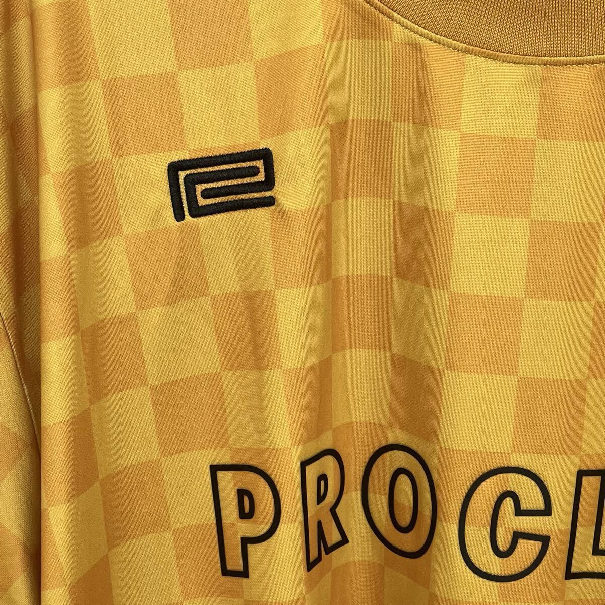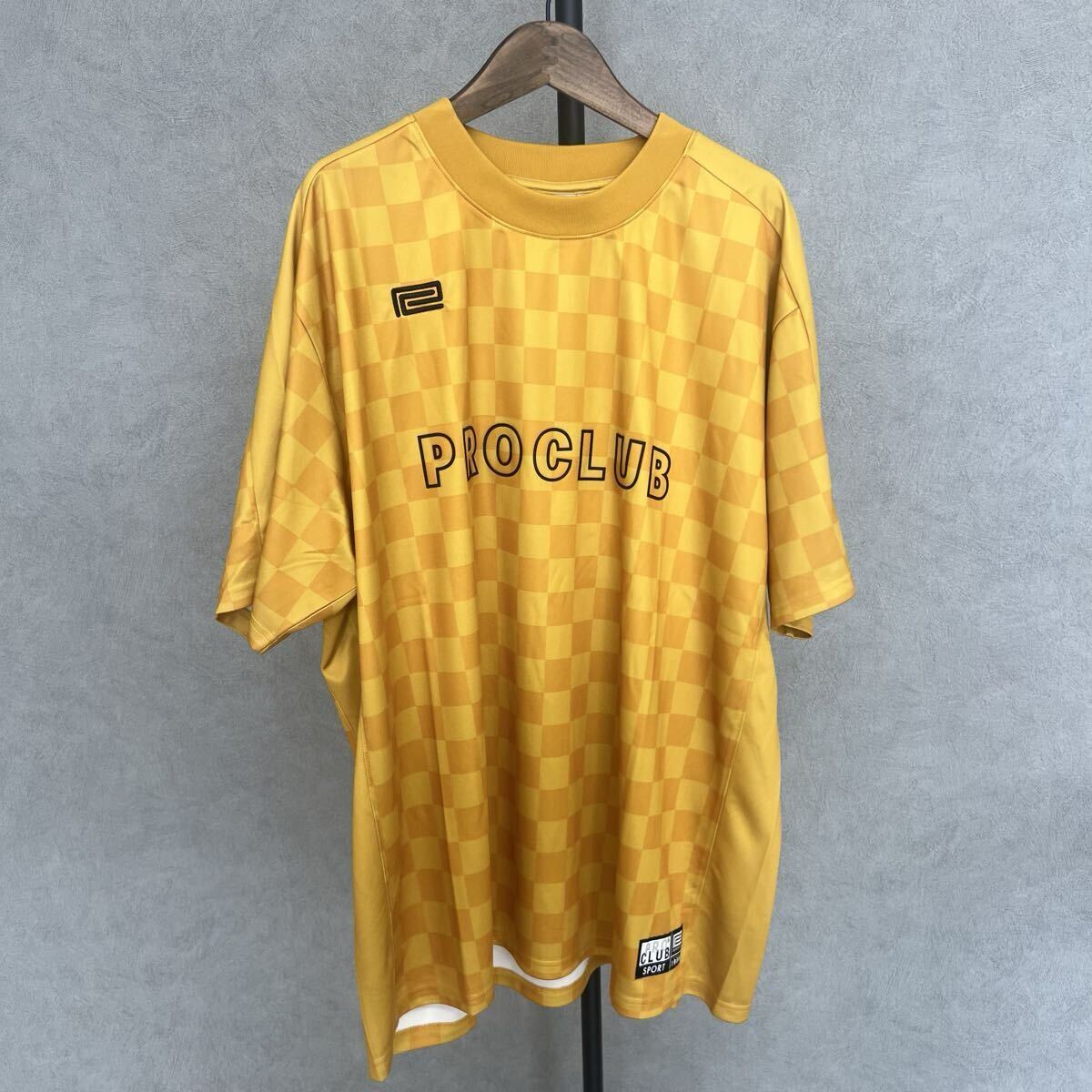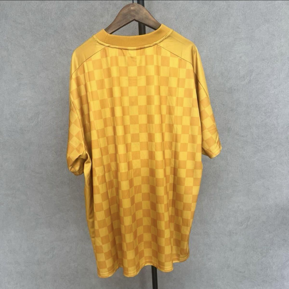 チェック柄と通気性のあるポリエステルを使用したパフォーマンスサッカージャージ。