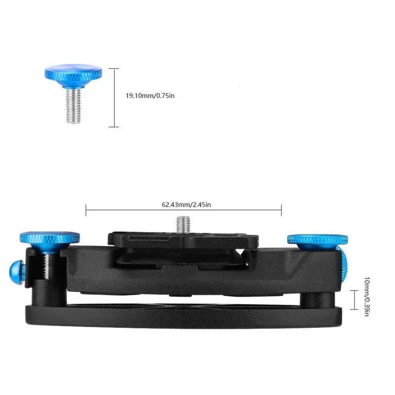 プレートはカメラ底面の三脚穴にネジで取り付けられます。