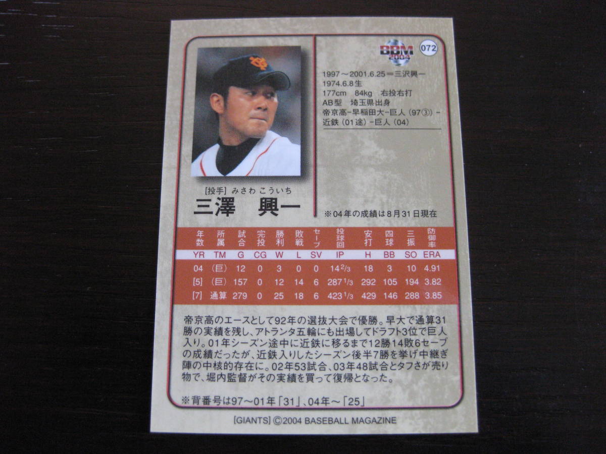 ★BBM04 ★三澤興一 072 巨人 読売ジャイアンツ 70年記念カード