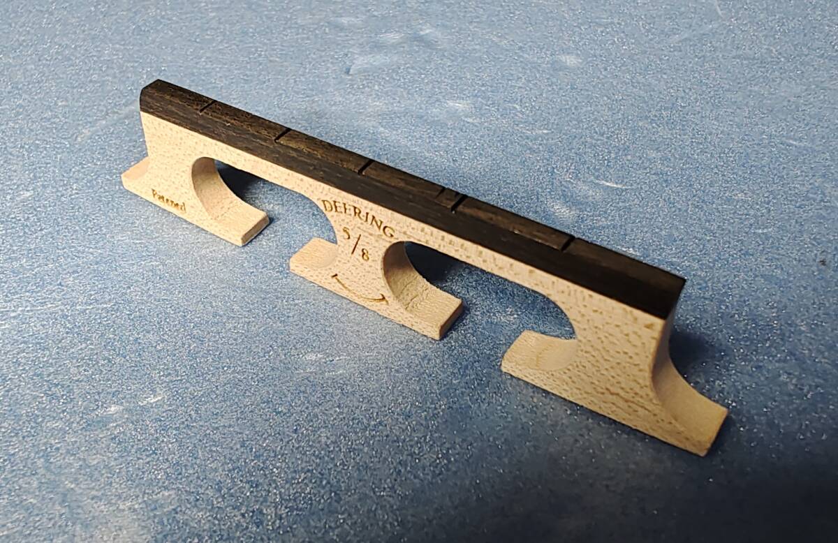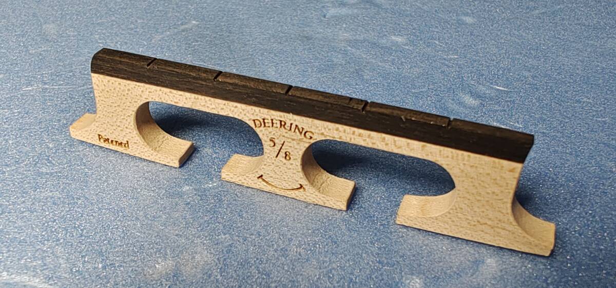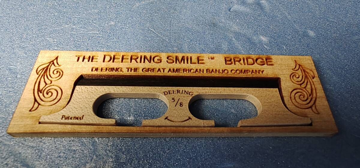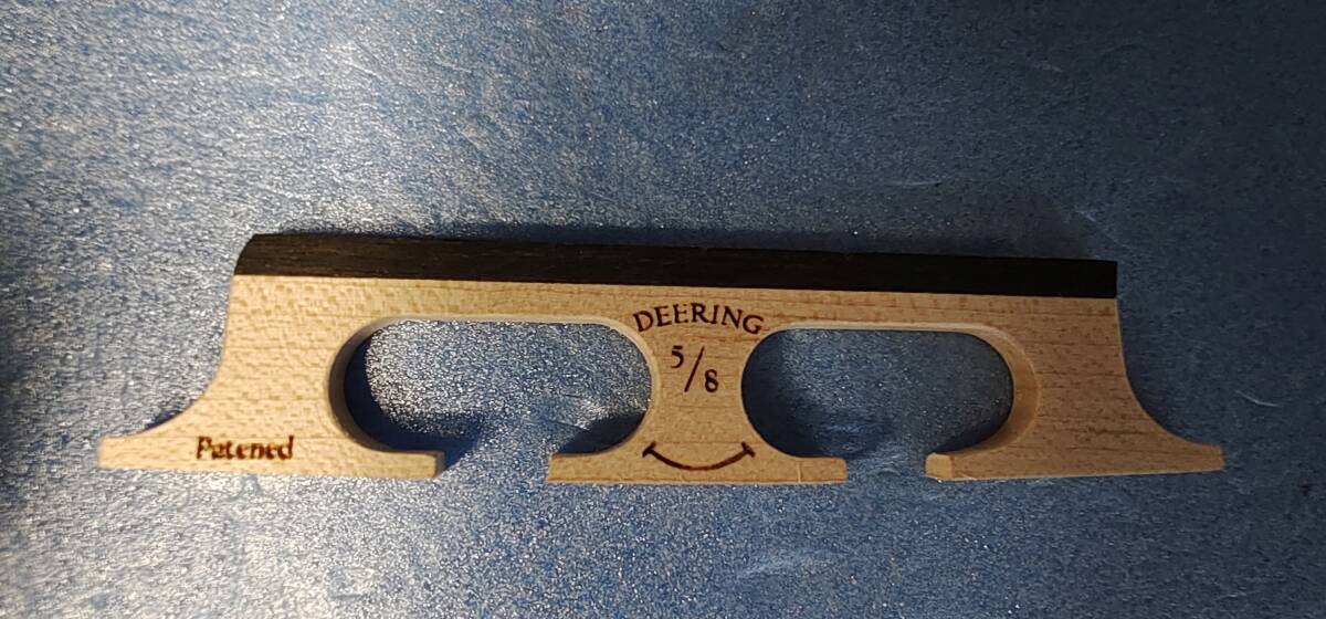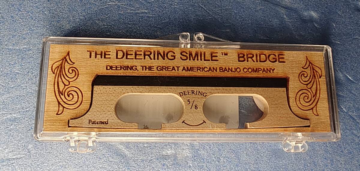 5/8 Deering smile bridge です!新品。横幅底面:78㎜。上面幅:66㎜。底幅:5.5㎜。弦溝ピッチ:11㎜。素人寸です。主観ですがソリッドでリバーブ感があるブリッジです。予備品で購入してましたが出品致します。
