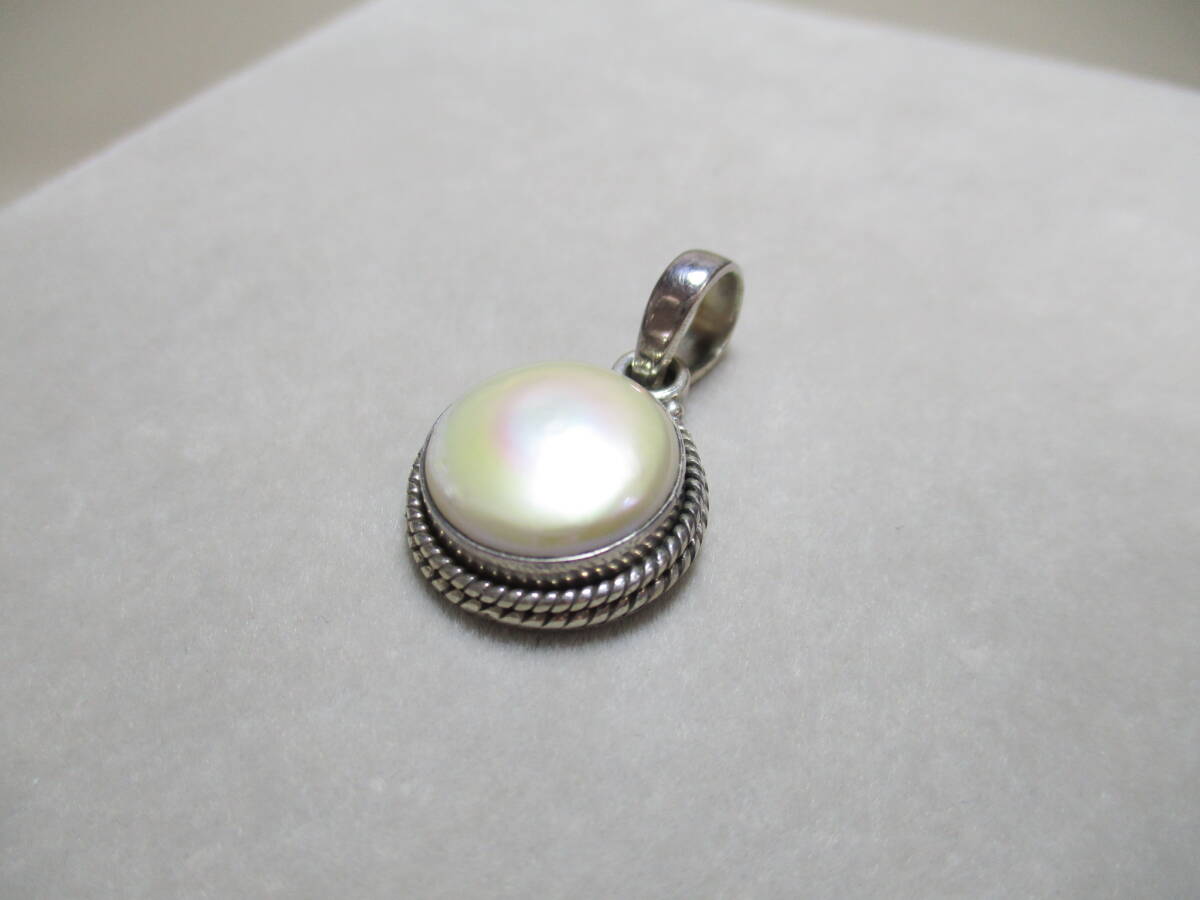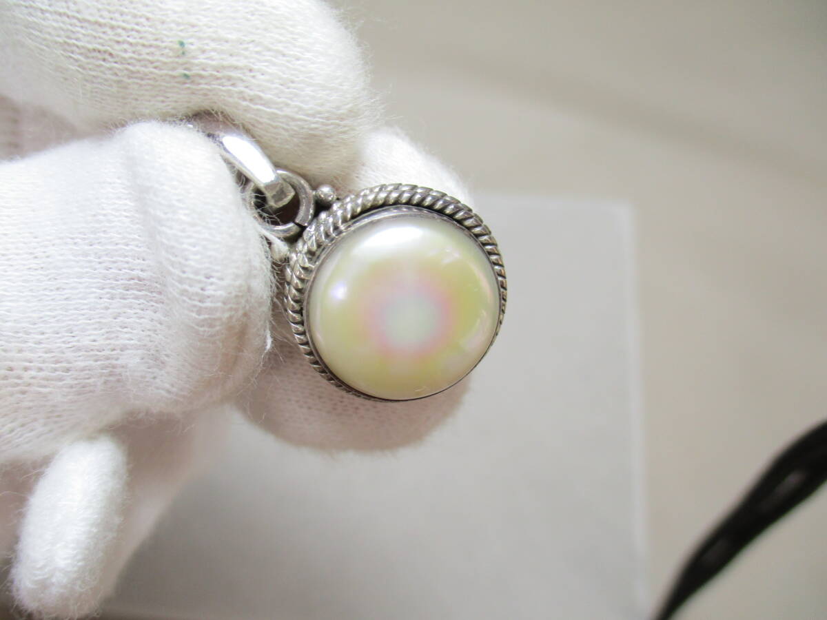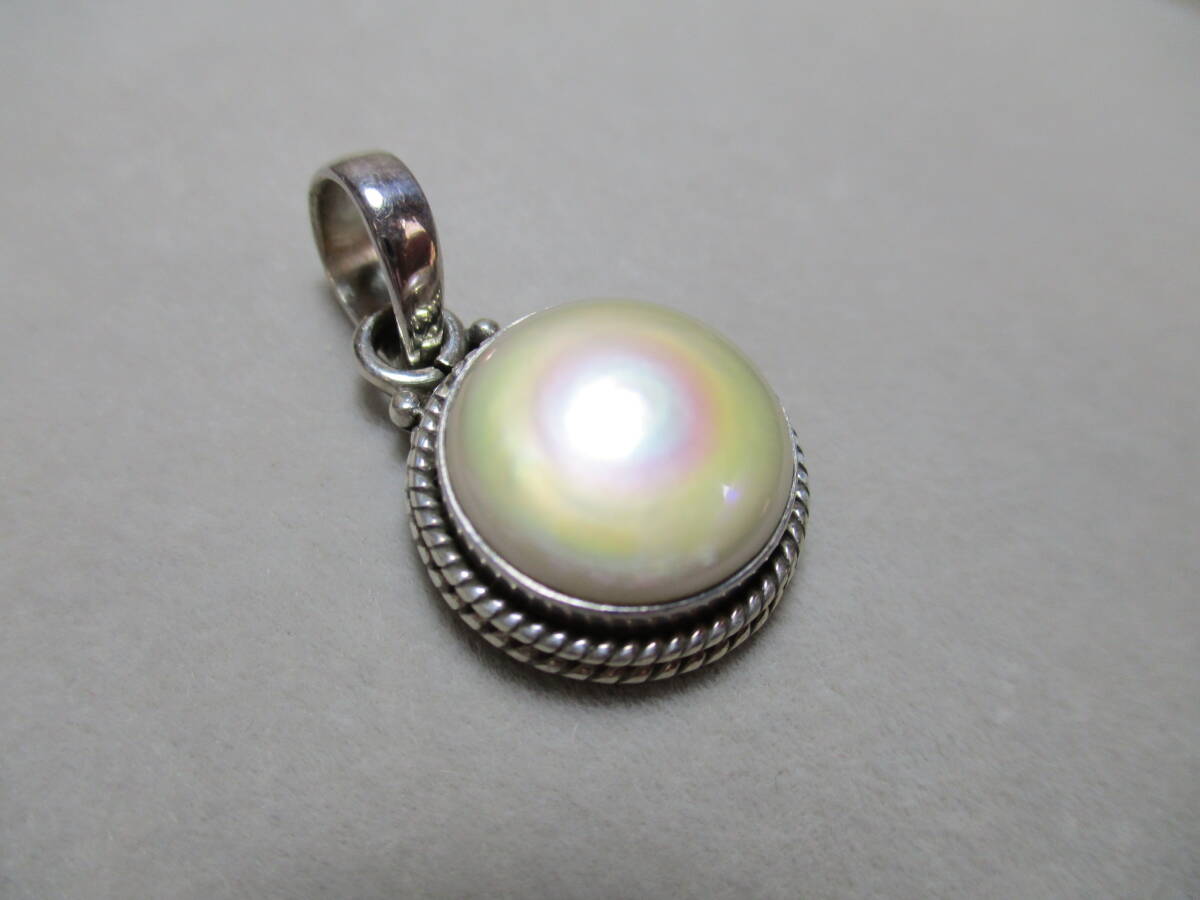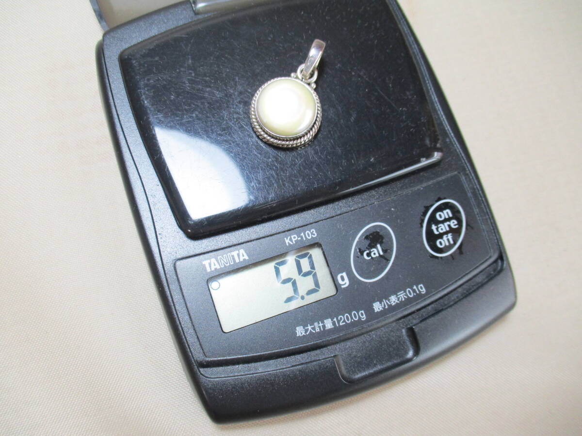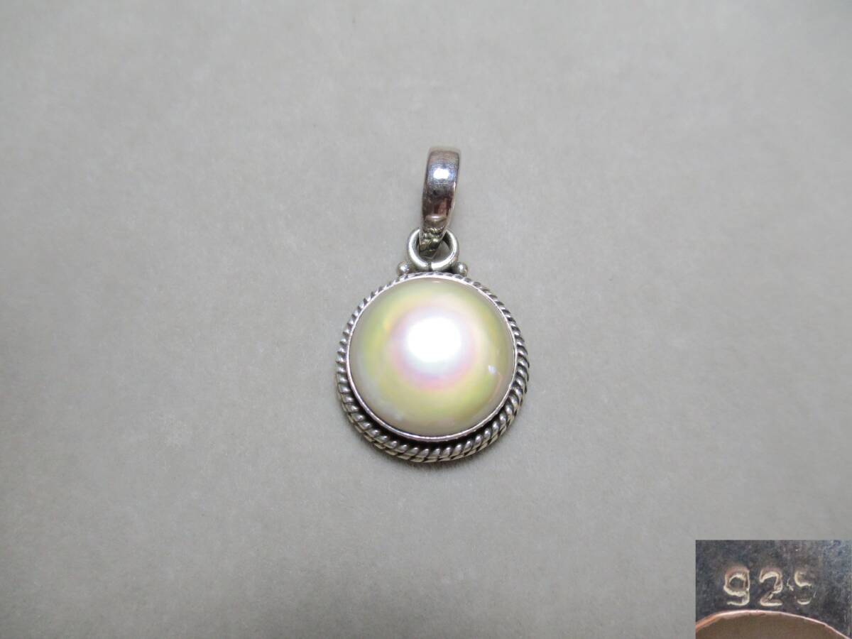 K136*シルバーアクセサリー* 925 マベパール? ペンダントトップ 1点 /中古 /白半球パール調 【送料込】