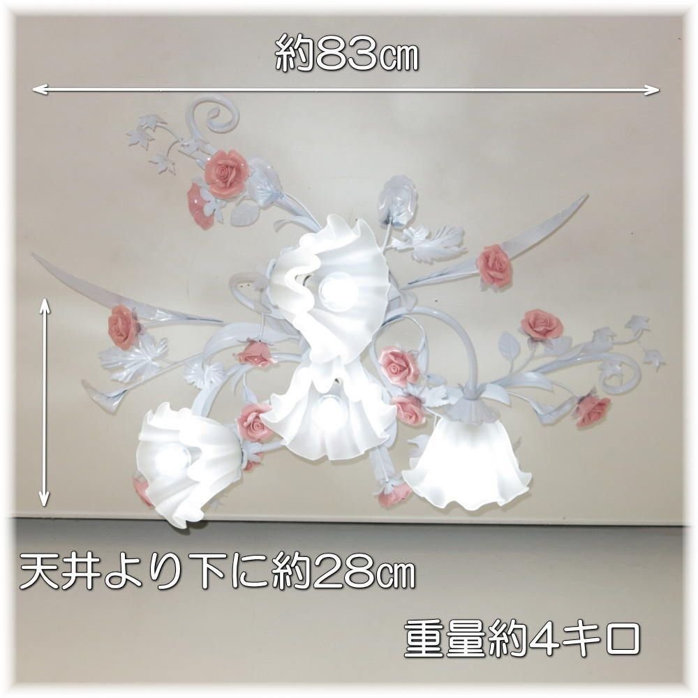 商品説明 | ![]() ☆LED電球サービスキャンペーン開催中!☆【送料無料!】新品・可愛い薔薇モチーフ4灯ホワイトLEDシャンデリア♪ ●キャンペーン期間中 広角LED電球4灯(¥4800-相当)お付けいたしまして驚きのプライス! ☆LED電球サービスキャンペーン開催中!☆ ※通常電球別売の為、価格記載の電球画像掲載がございますがキャンペーン期間中は無償提供(調光別途¥200-)させて頂いております※ ☆新品・可愛い薔薇モチーフ4灯ホワイトシャンデリア ☆電球のシェードはガラスで本体は金属で職人が1枚づつ作り合わせ、陶器製の薔薇モチーフを散りばめホワイトのペイントを施した手作りのシャンデリアです♪ ☆シャンデリア本体は調光にも対応しております ※調光ご希望の場合、調光対応LED1個¥200-アップと汎用調光器(Panasonic製LED用調光器推奨)が必要です ☆付属電球・・・口金E17広角LED白色4灯(明るさ40ワット消費電力4ワット 暖色36Lm/W・白色40Lm/W) ※調光対応LED1個別途¥200- ※暖色LEDご希望の場合はご注文後お申し付けください 商品画像は白色LEDを装着し撮影しております ☆取り付けに関しましてはワンタッチでは御座いませんが(配線はワンタッチ)引掛けシーリングに対応しております ※明るさに関しましては個人差がございますが4.5~6畳程度が最適かとおもいます ☆可愛いデザイン照明 新品 薔薇モチーフ4灯シャンデリア シーリングタイプを是非この機会に! サイズ・・・シャンデリア直径約83cm 天井より下に約28cm 重量約4キロ です ![]() |