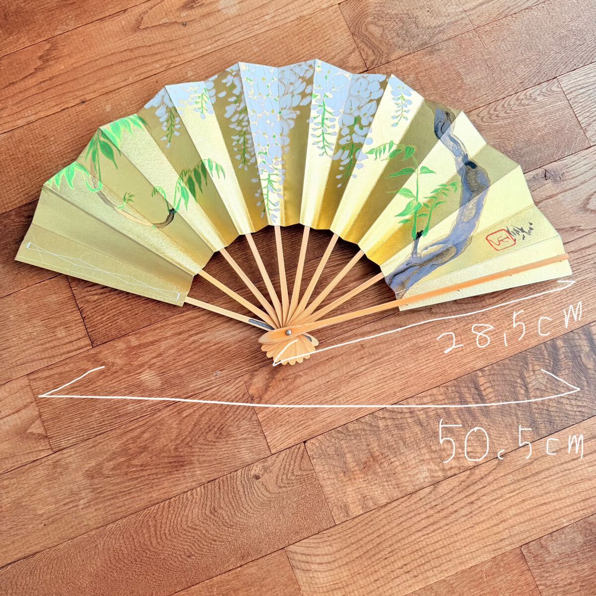 サイズは広げた時の幅約50.5cm、高さ約28.5cmとなっており、飾り扇としても大変映えます。