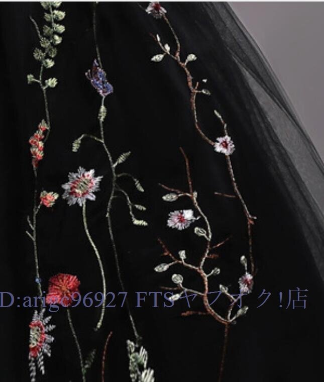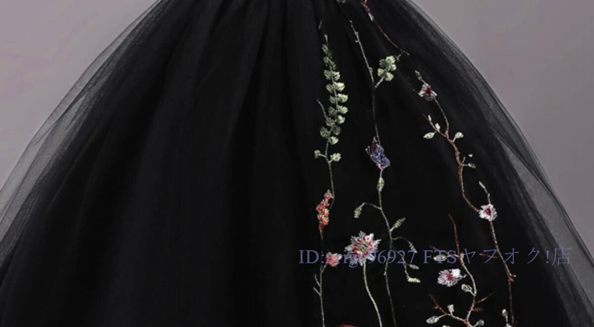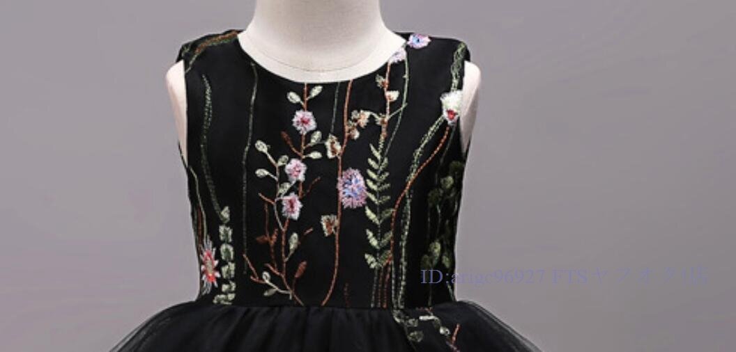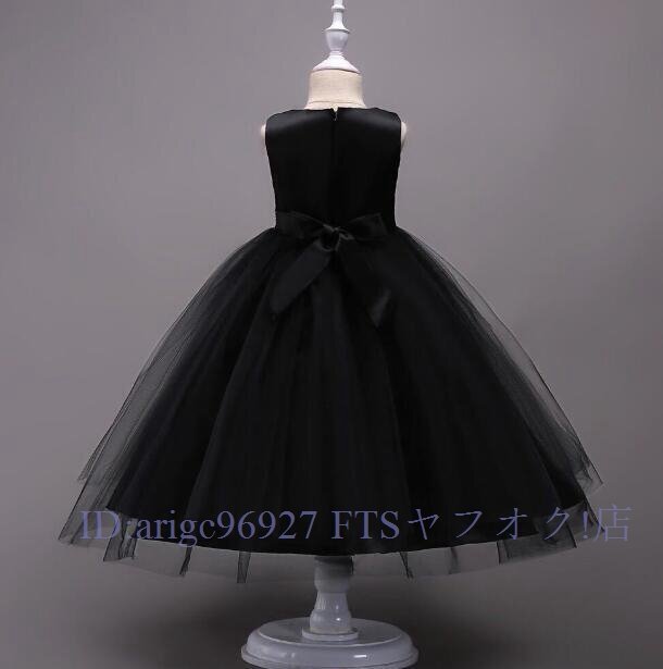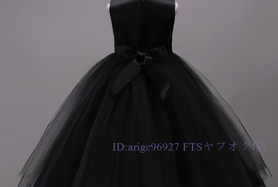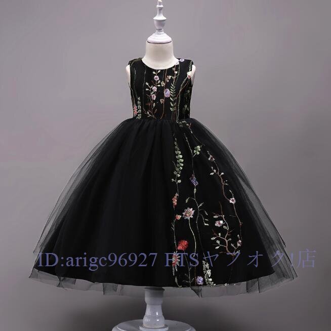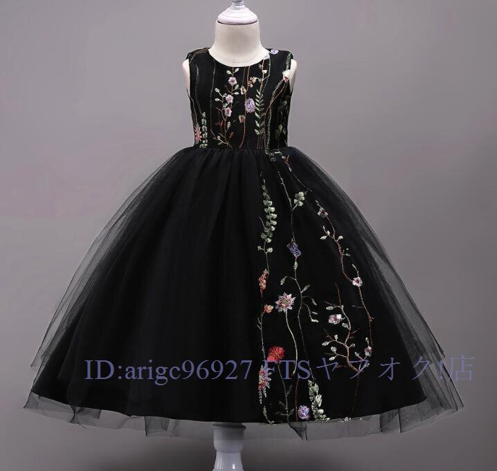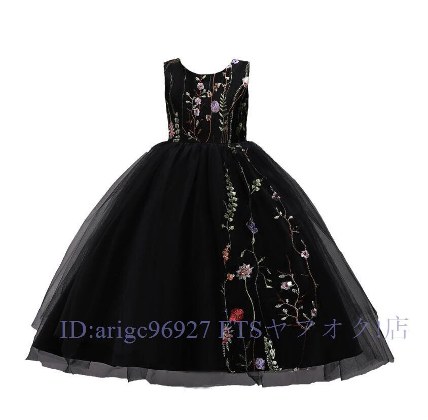 ★新品150cm子供ドレス発表会結婚式ロング キッズドレス 女の子 フォーマルドレス 刺繍 ジュニア ドレス ピアノ コンクール ブラック