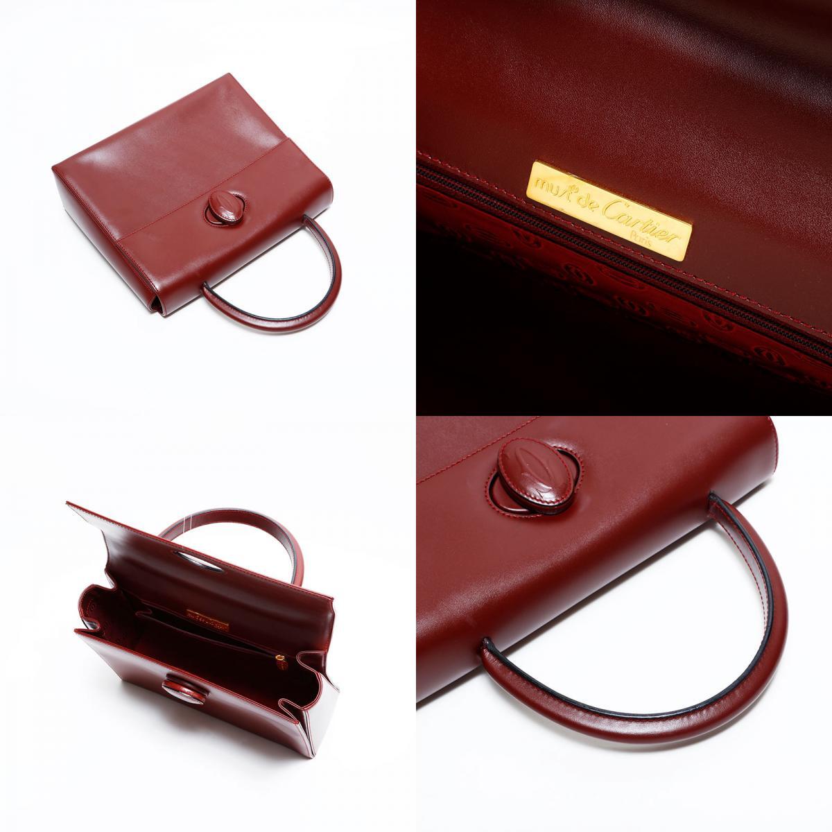 極美品 CARTIER マスト ドゥ レザー ハンドバッグ レッド