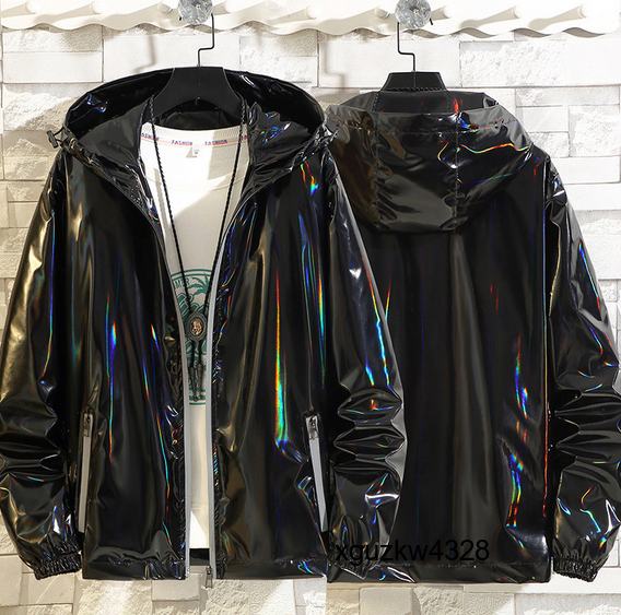 2色 メンズ 光沢 ジャケット マウンテンパーカー アウター ジップパーカー ジャンパー ブルゾン カジュアル 春秋 黒 M~5XL