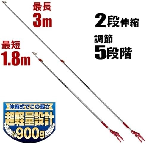 • 特徴:軽い切れ味、美しい切り口、超軽量900gの高枝切鋏