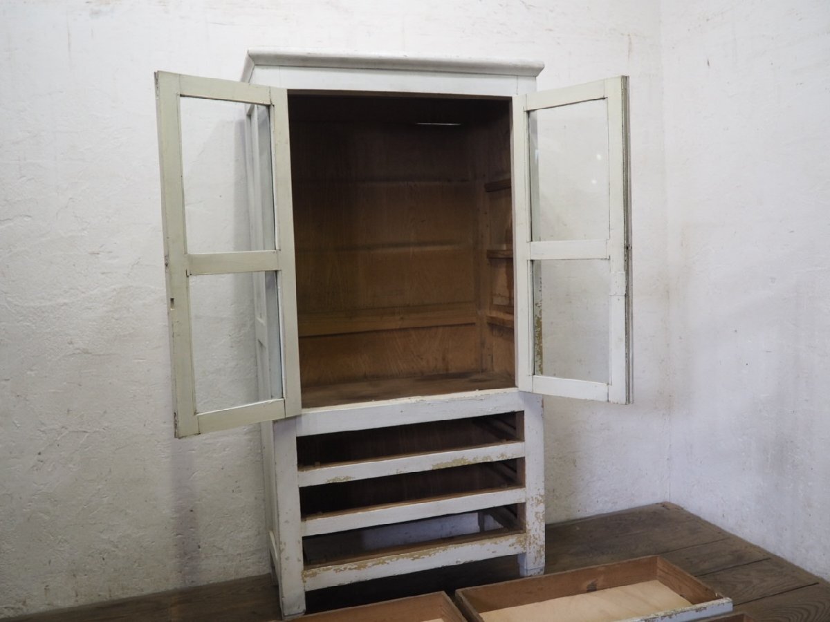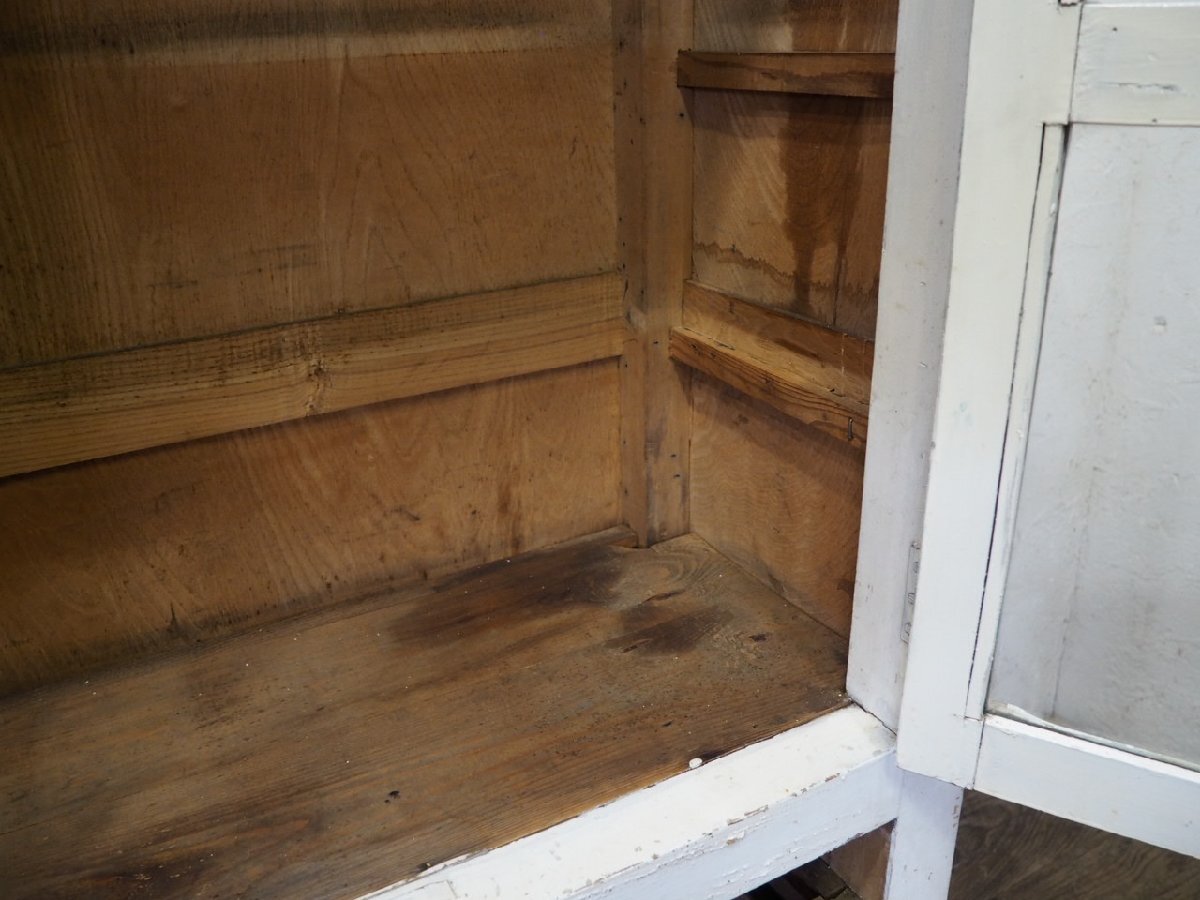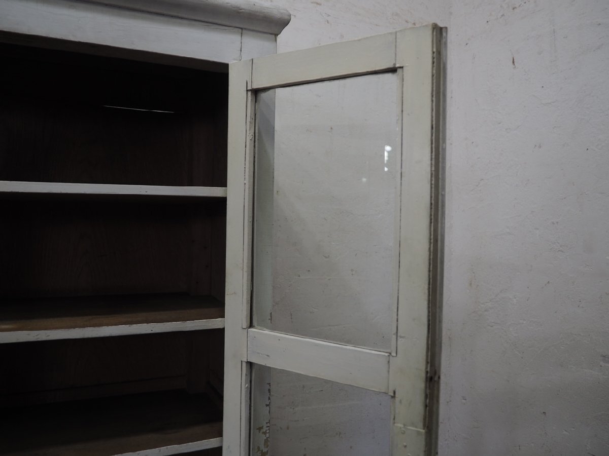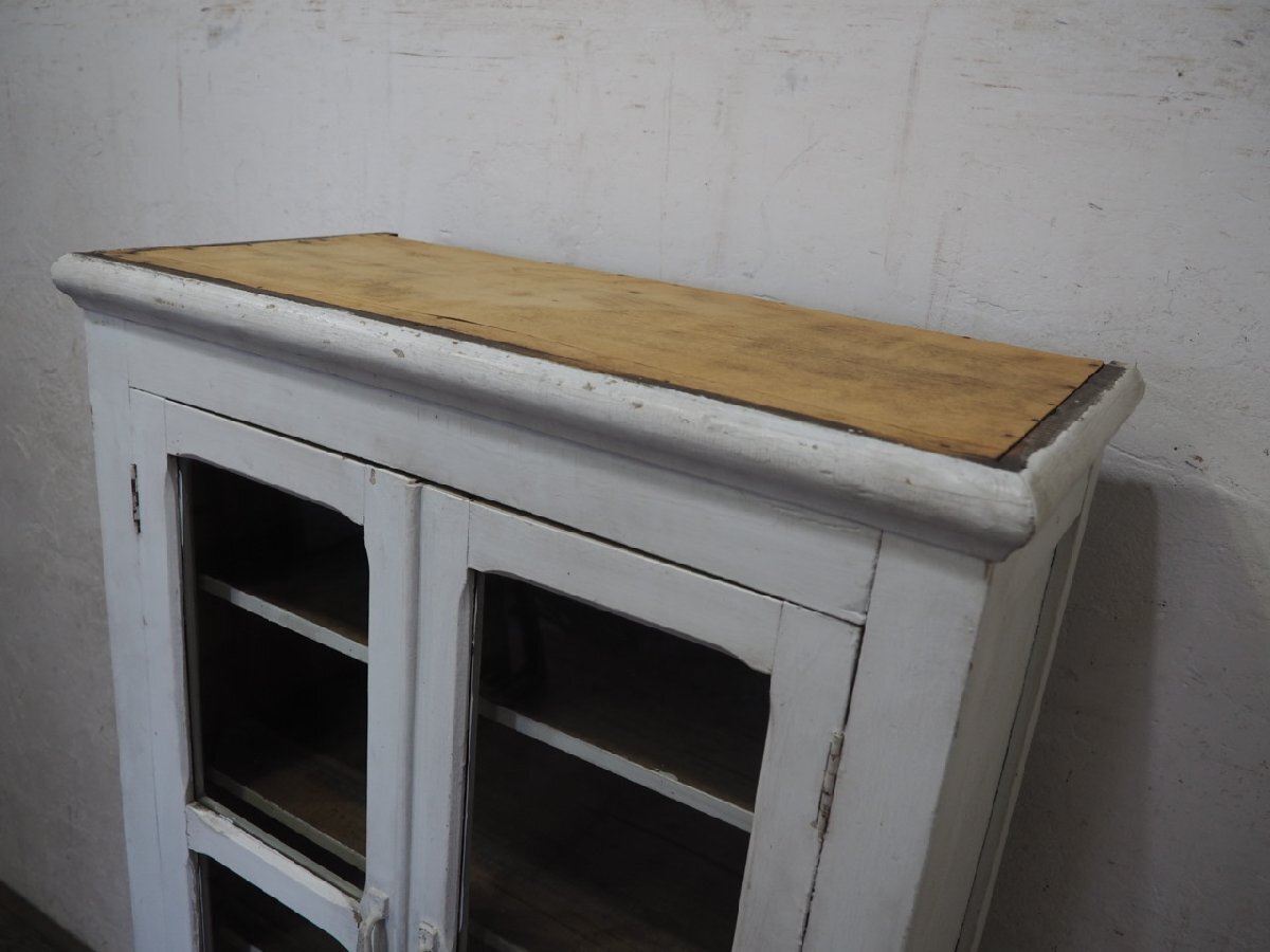 タ荷R0897◆H151cm×W79cm◆アンティーク◆可愛い白ペンキの古い木製ガラスケース◆飾り棚 陳列棚 ケビント キャビネット レトロP(ヤD)松