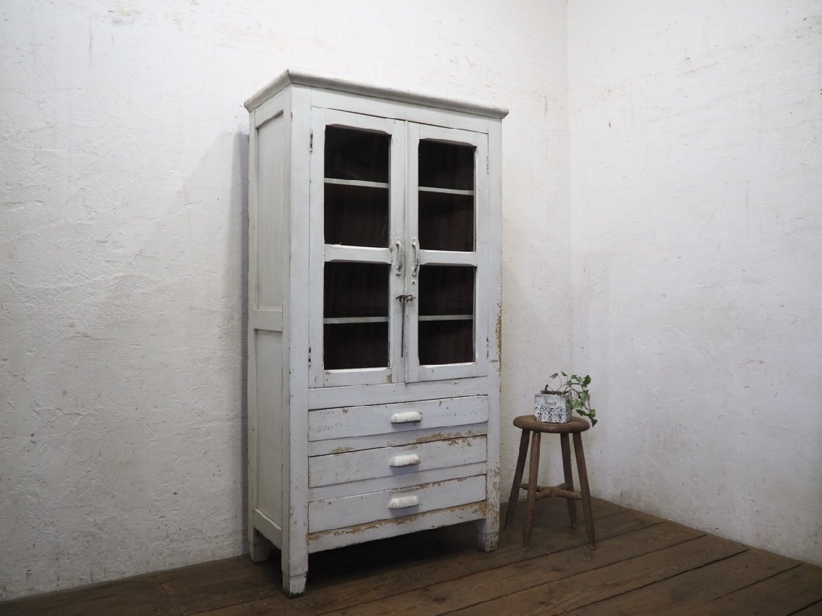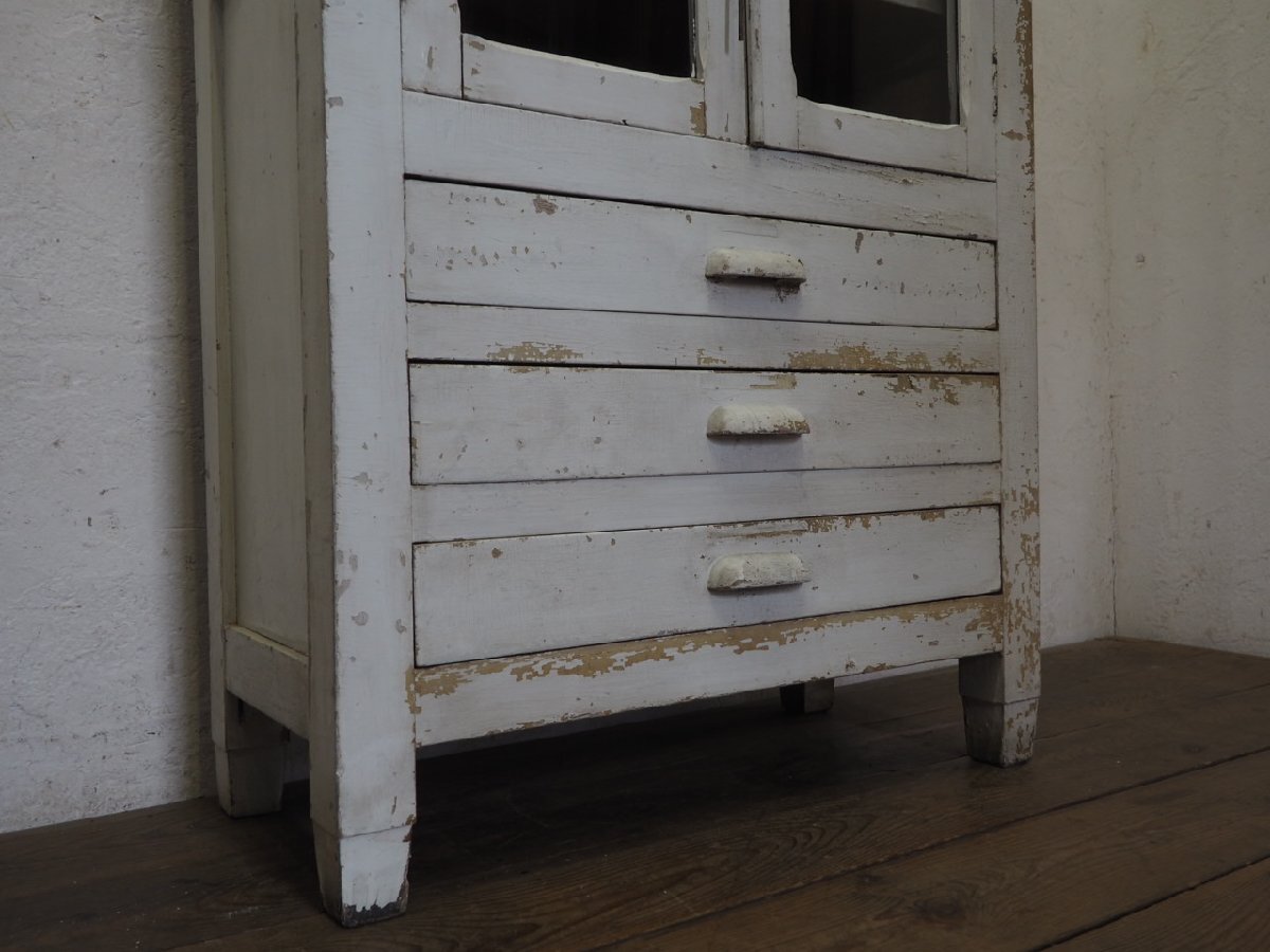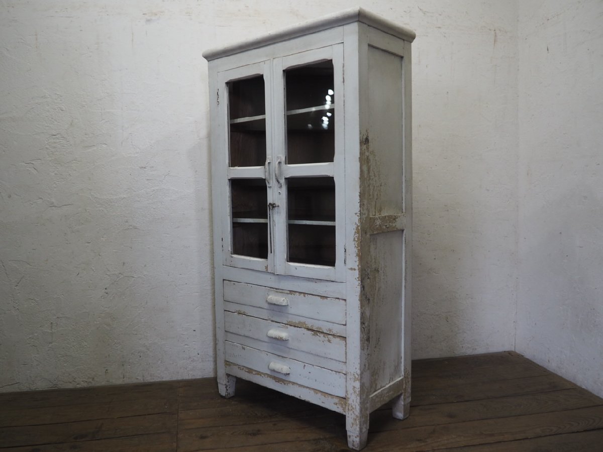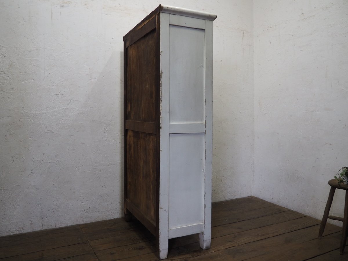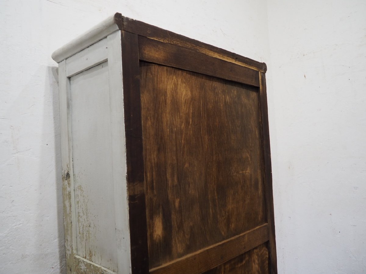 タ荷R0897◆H151cm×W79cm◆アンティーク◆可愛い白ペンキの古い木製ガラスケース◆飾り棚 陳列棚 ケビント キャビネット レトロP(ヤD)松