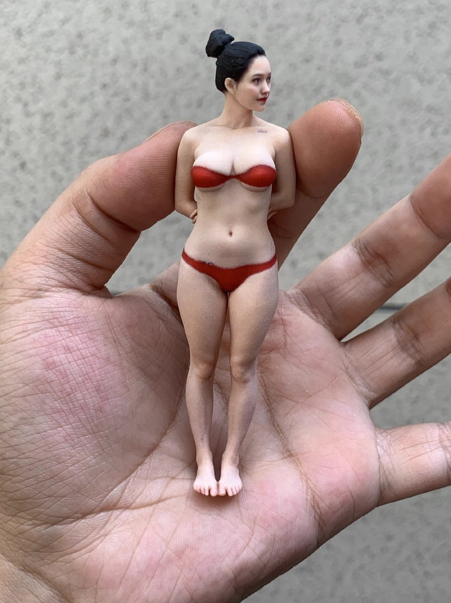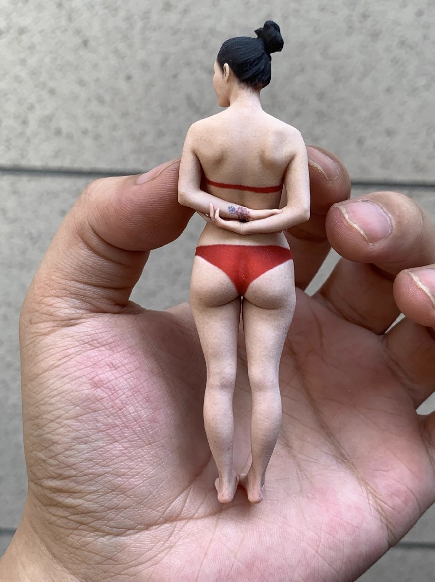 1/18スケール 超写実 ビキニ少女 レジン製ミニチュア彫刻 ミニ手 机の上置き飾り 塗装済み完成品