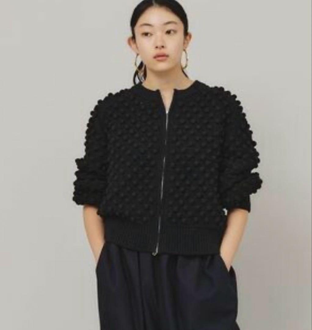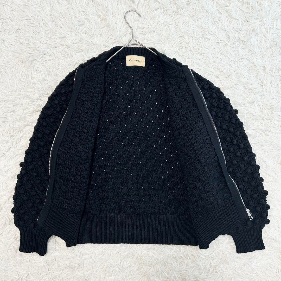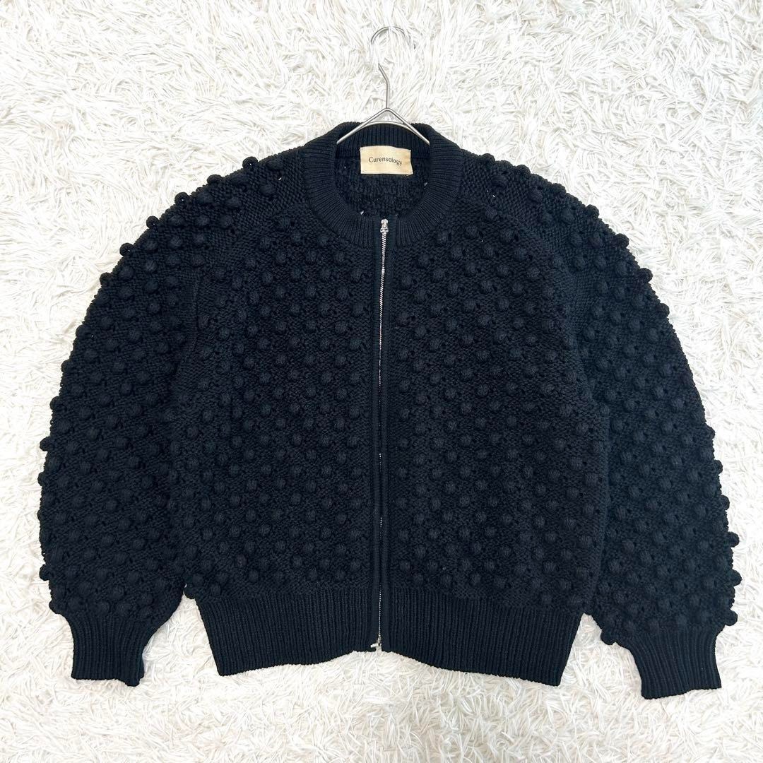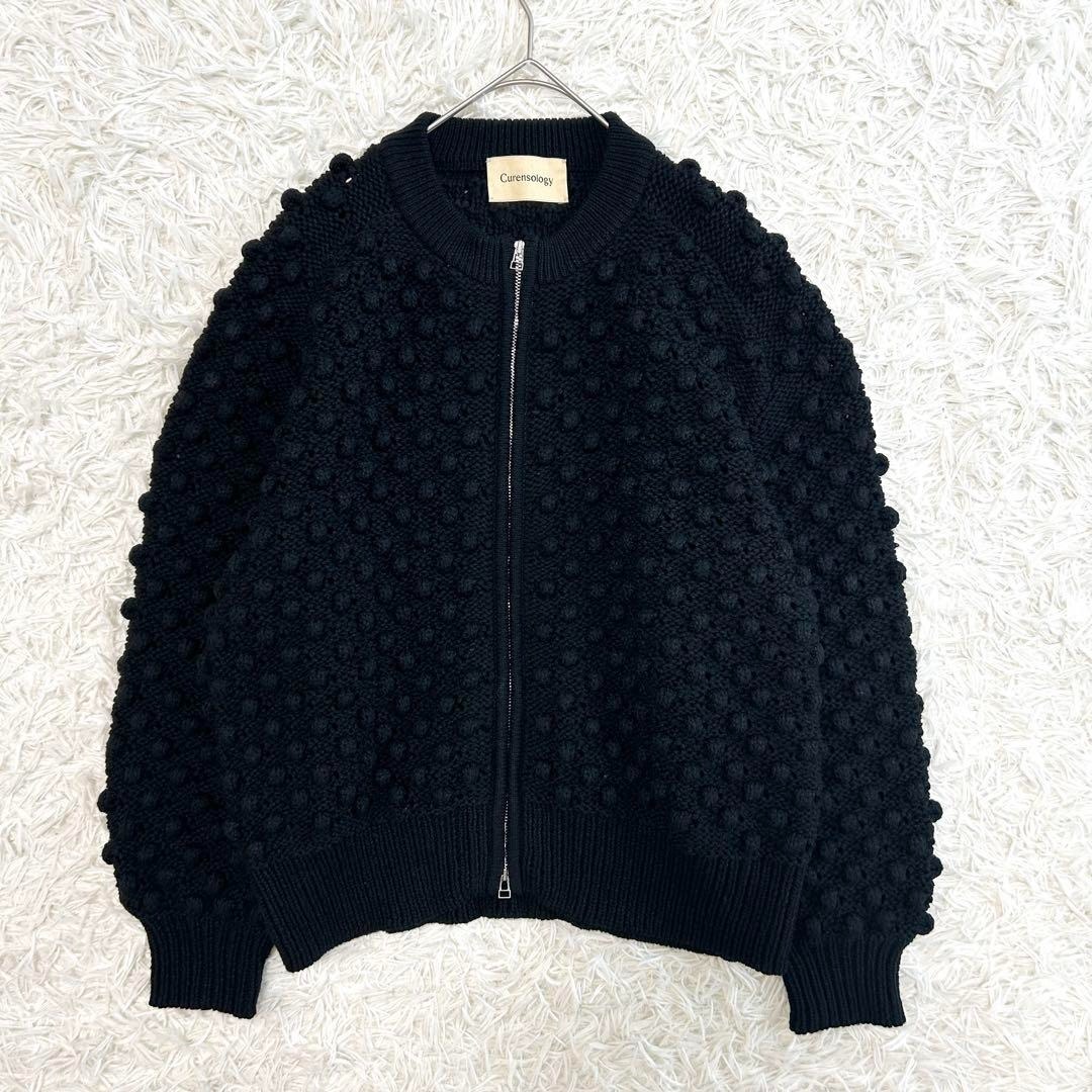 Curensology カレンソロジー ニットカーディガン ポコポコ編み ジップアップ ブラック 黒 羽織り アウター カジュアル モード 完売 人気 レディース