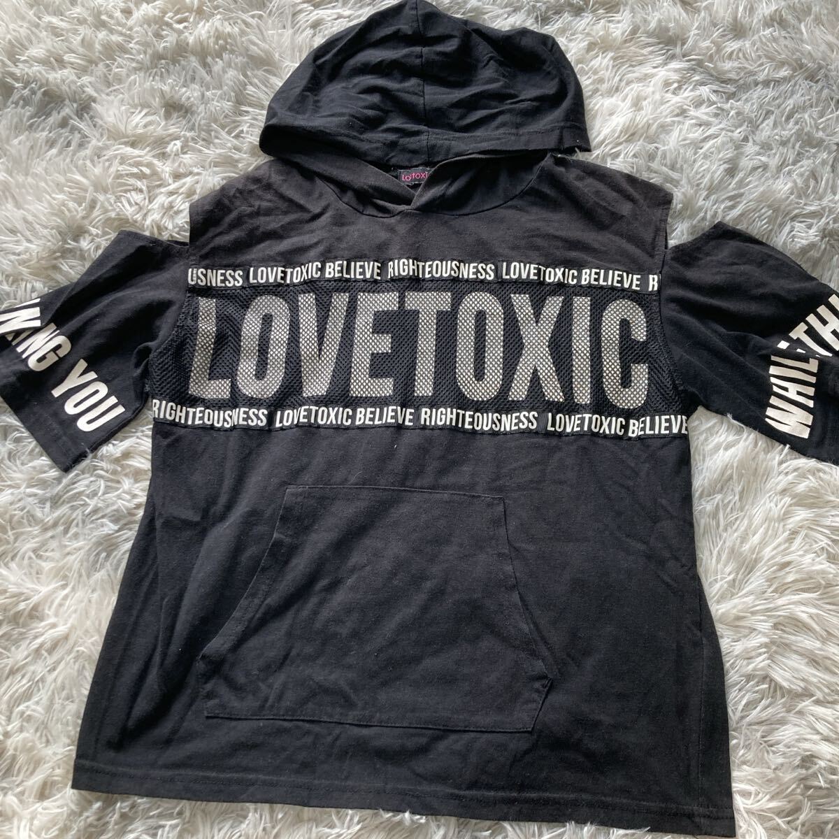 | +Thank You+ | ★★★ ラブトキシック LOVETOXIC 部分メッシュロゴパーカーTシャツ黒M150☆used44 ★★★ | +Thank You+ |