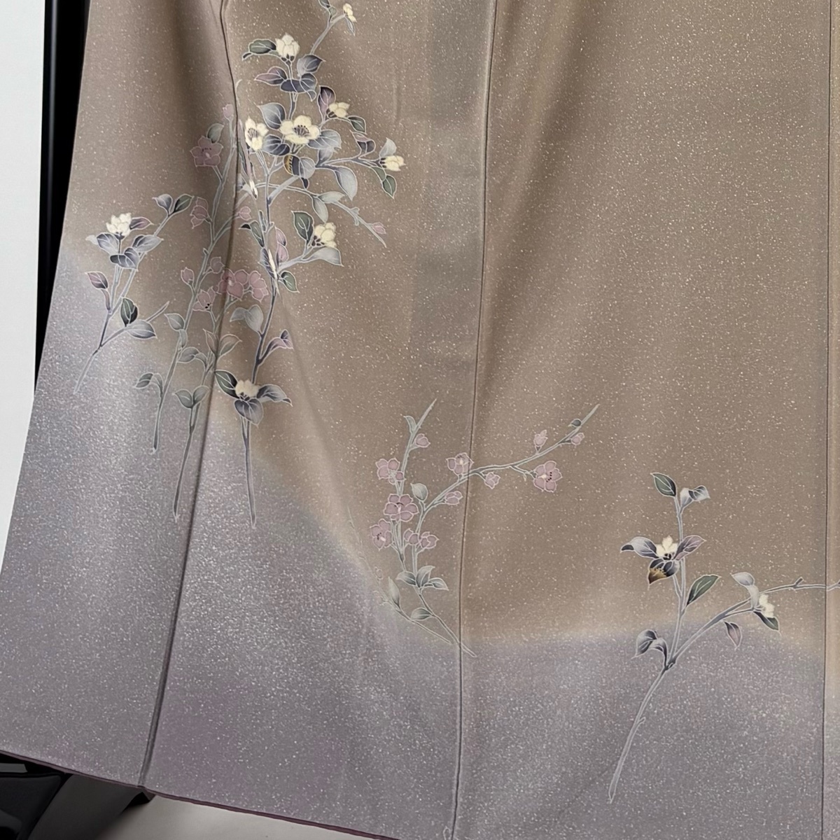 | 付下げ 秀品 枝花 染め分け 灰茶 袷 身丈164 裄丈68 L 正絹 【中古】 |