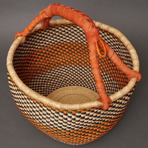 ブルキナファソのエレファントグラスで編まれた半球型のバスケットは、しなやかで丈夫な草を丁寧に編み込んだ伝統的な手仕事の品です。